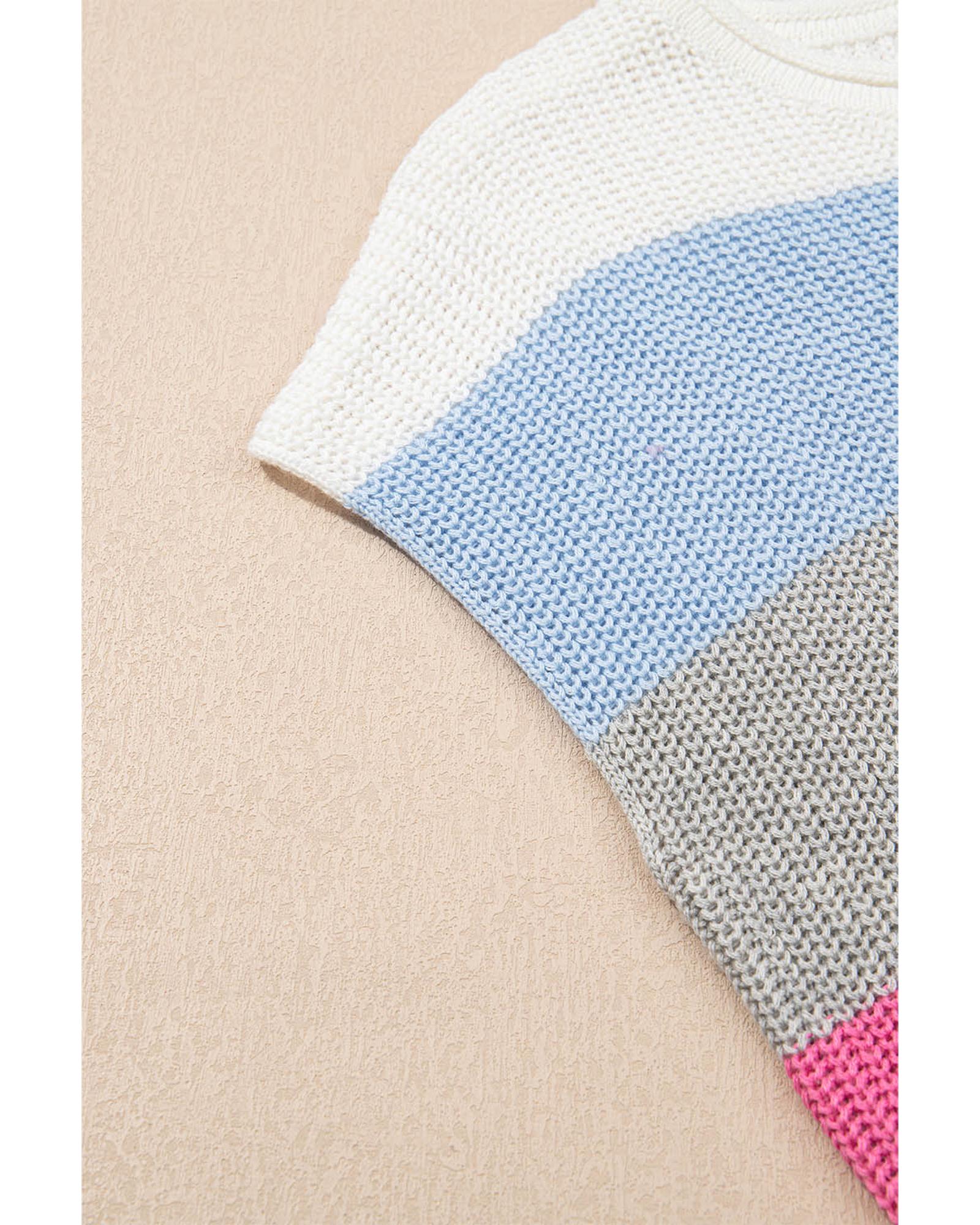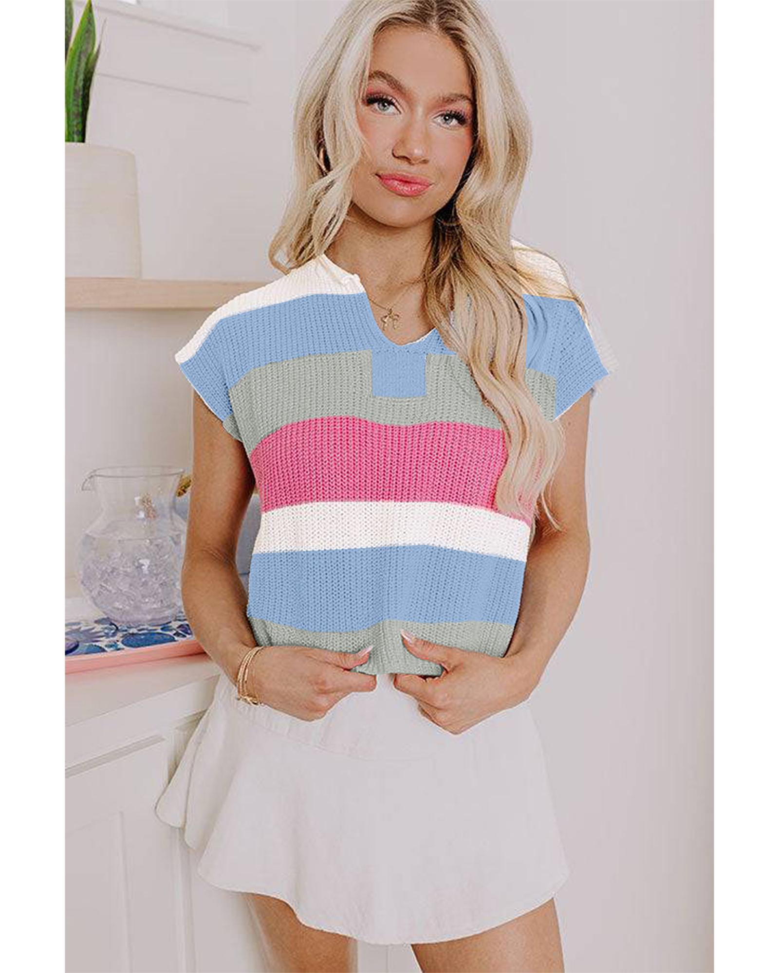 This light blue color block notch V-neck sweater T-shirt offers a stylish and comfortable option for casual wear. Its relaxed fit and soft fabric make it suitable for everyday use, providing both comfort and a flattering appearance.