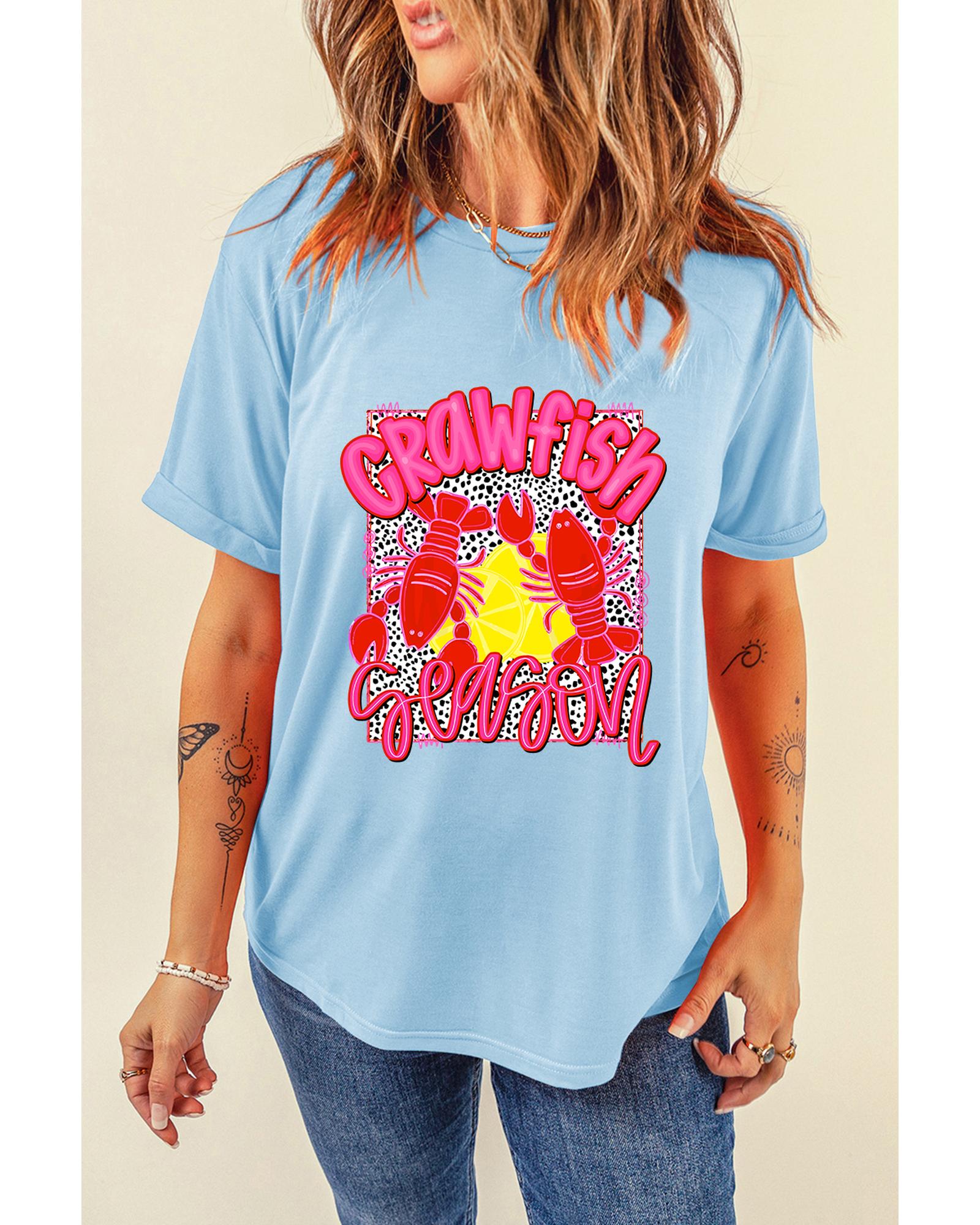 Package Content: 1 Light Blue Crawfish Season Graphic T-Shirt