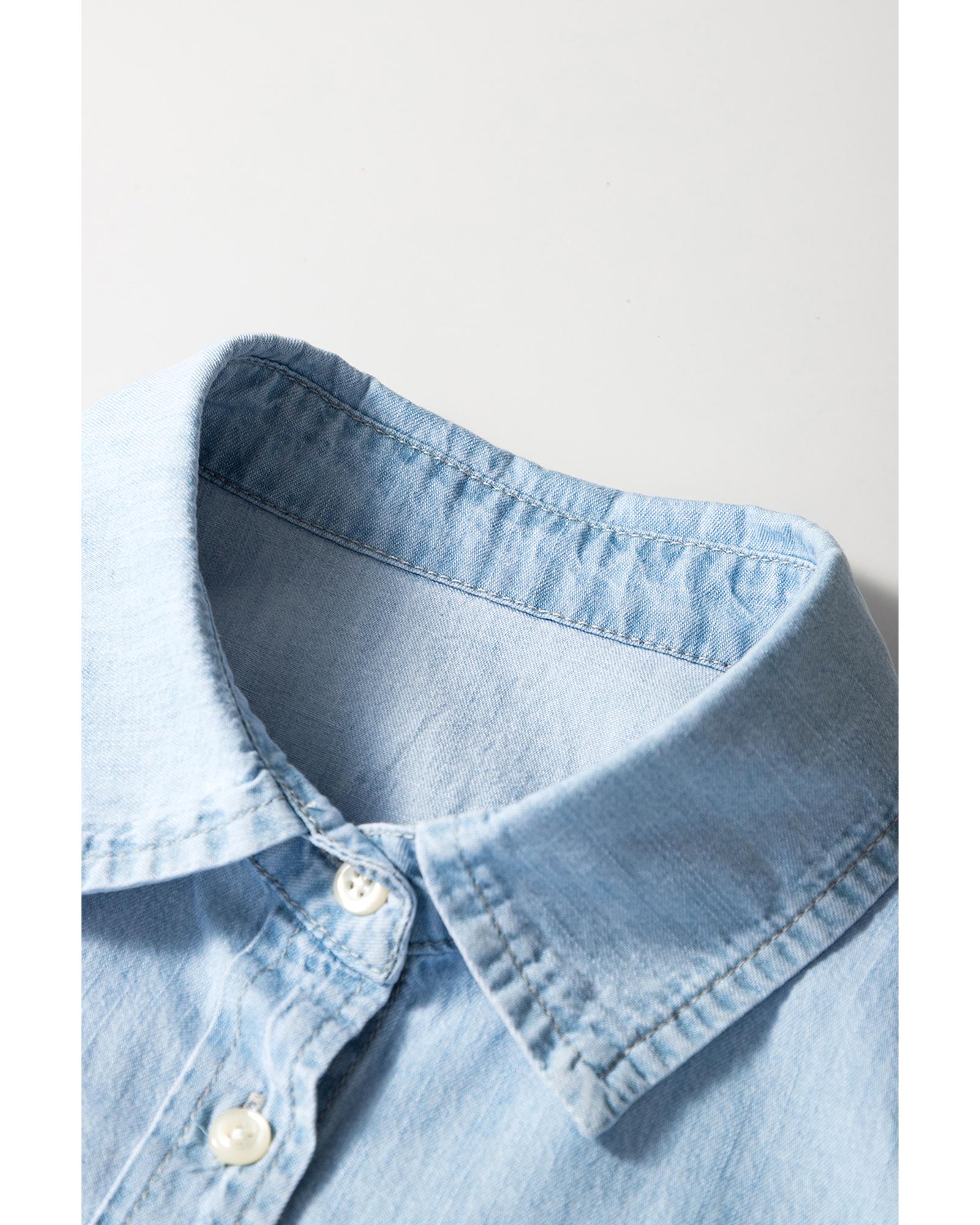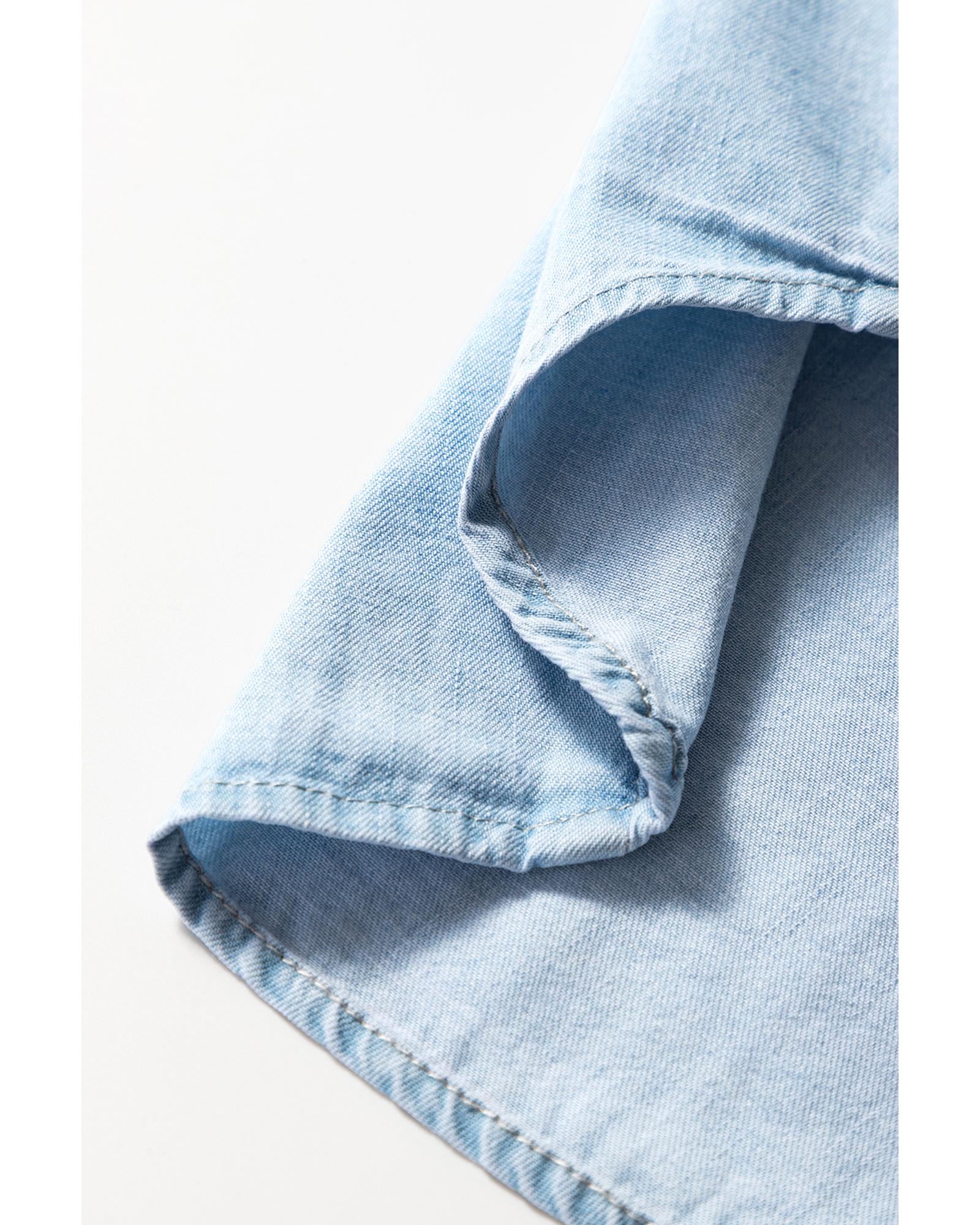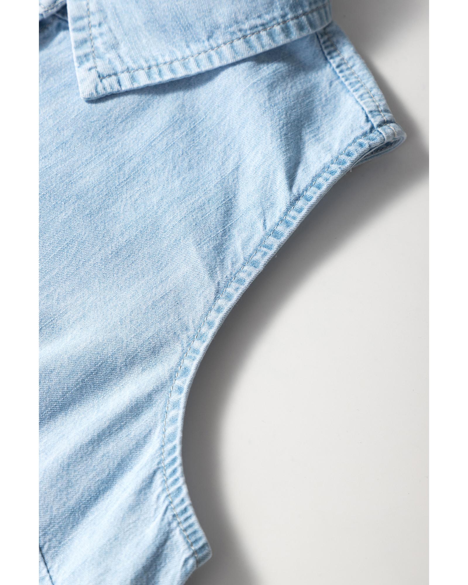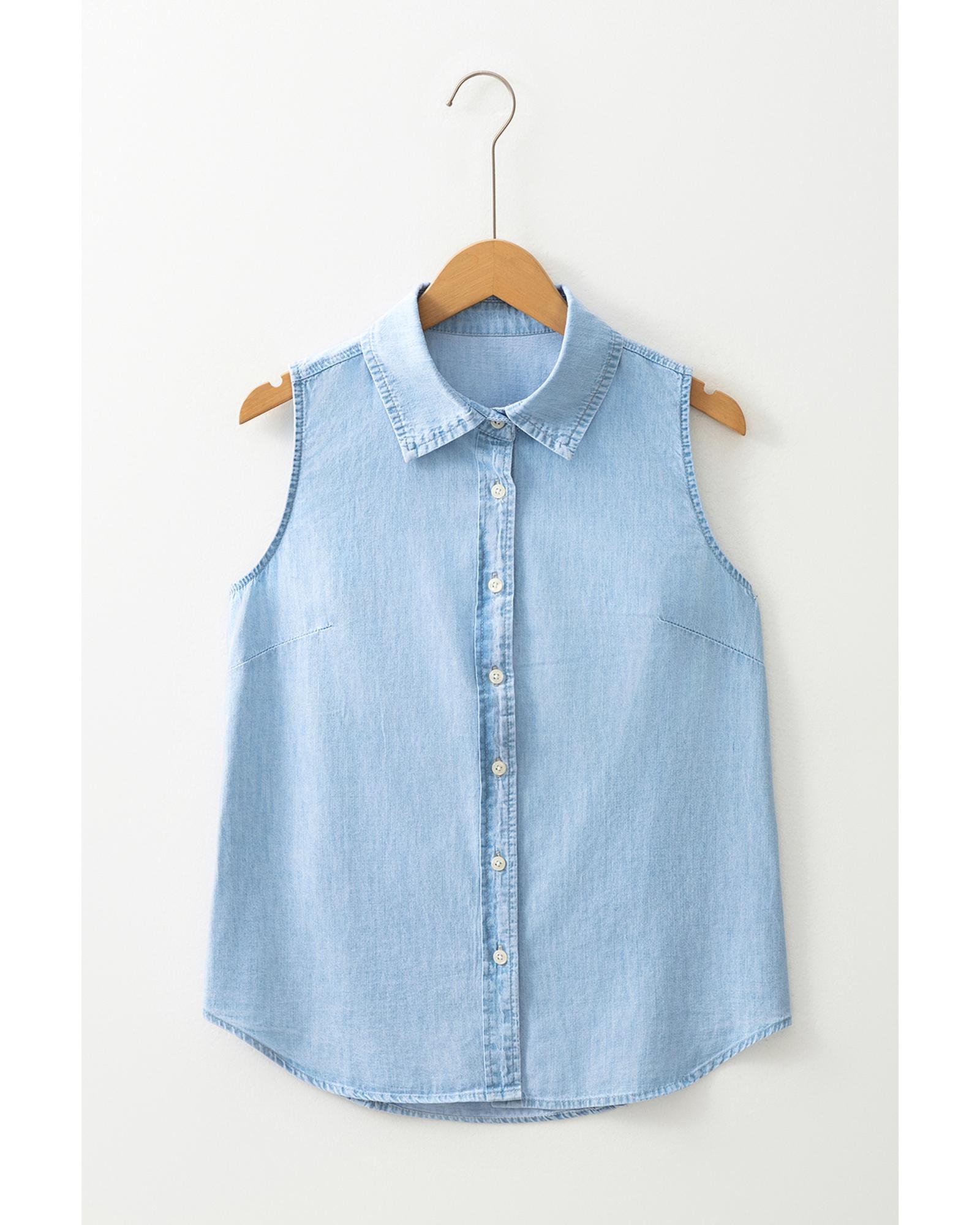 This light blue denim sleeveless shirt features a classic design with a modern fit, making it a versatile addition to any wardrobe. Its collared style adds a touch of sophistication, while the sleeveless cut makes it ideal for warm weather. The shirt is easy to layer with button-up front for convenience.