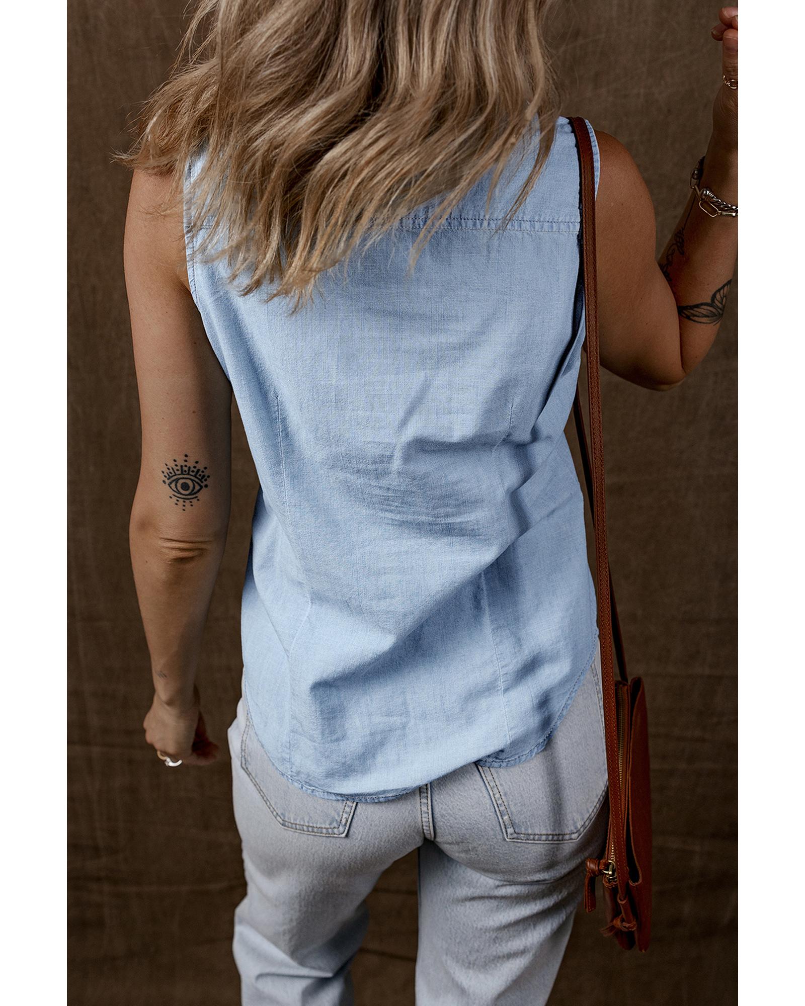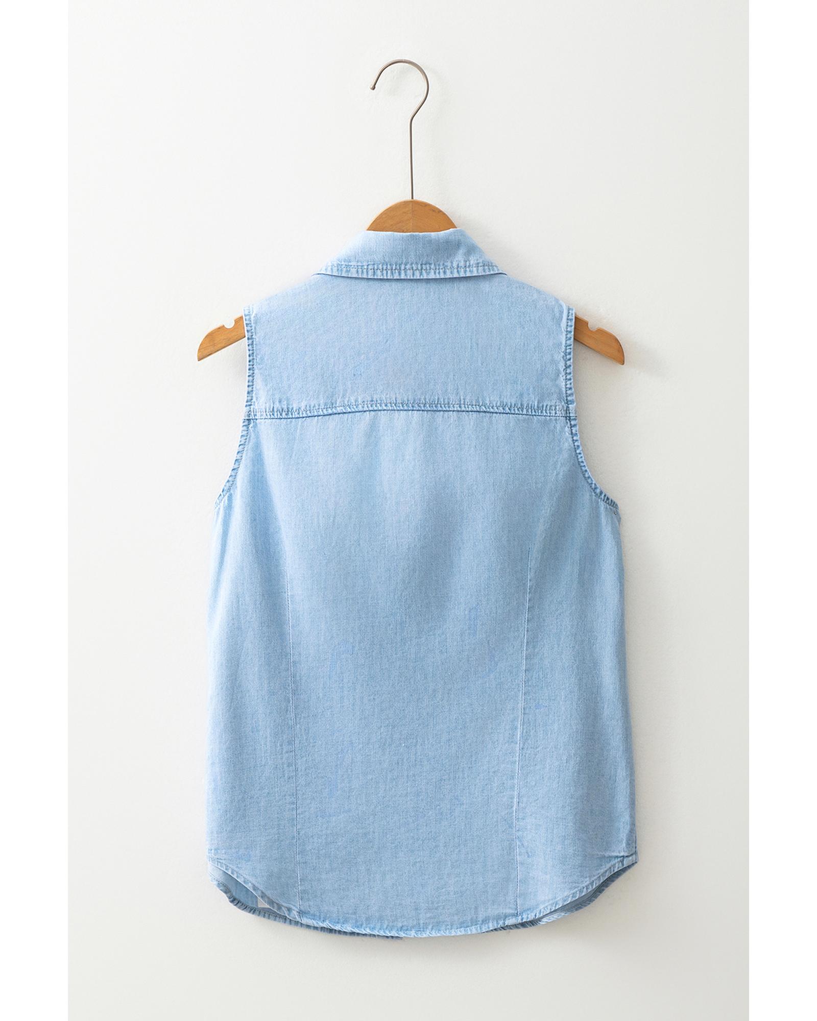 Package Content: 1 Light Blue Denim Collared Sleeveless Shirt