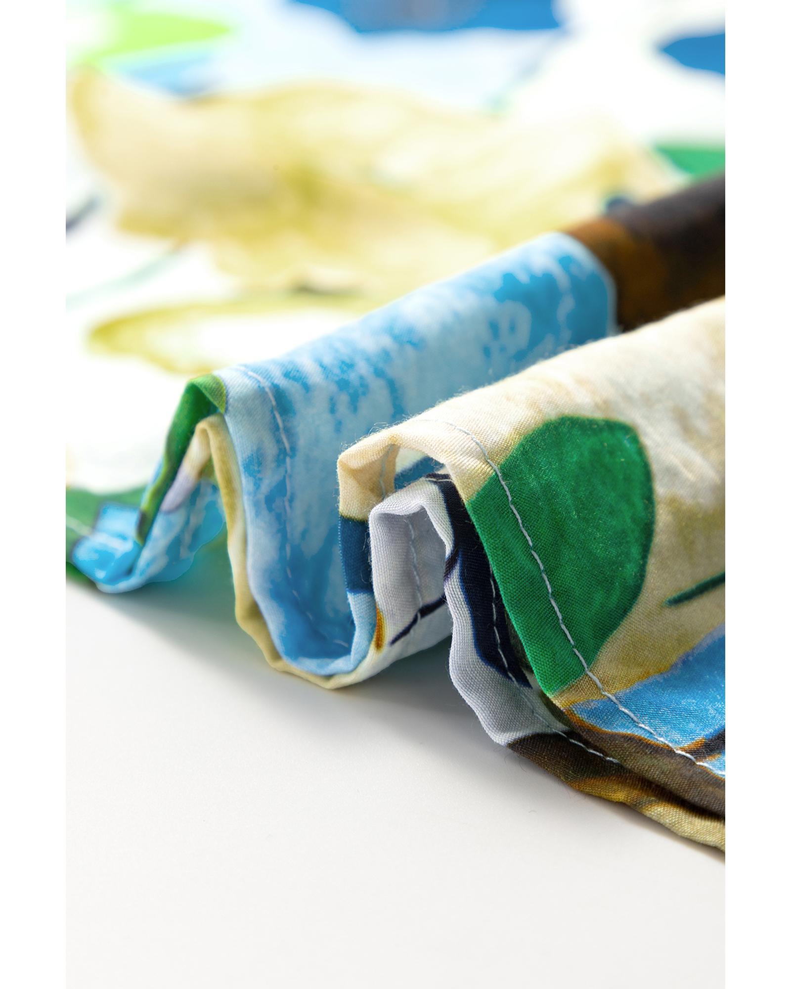 Light Blue Floral Print Slit V Neck Short Sleeve Blouse – S