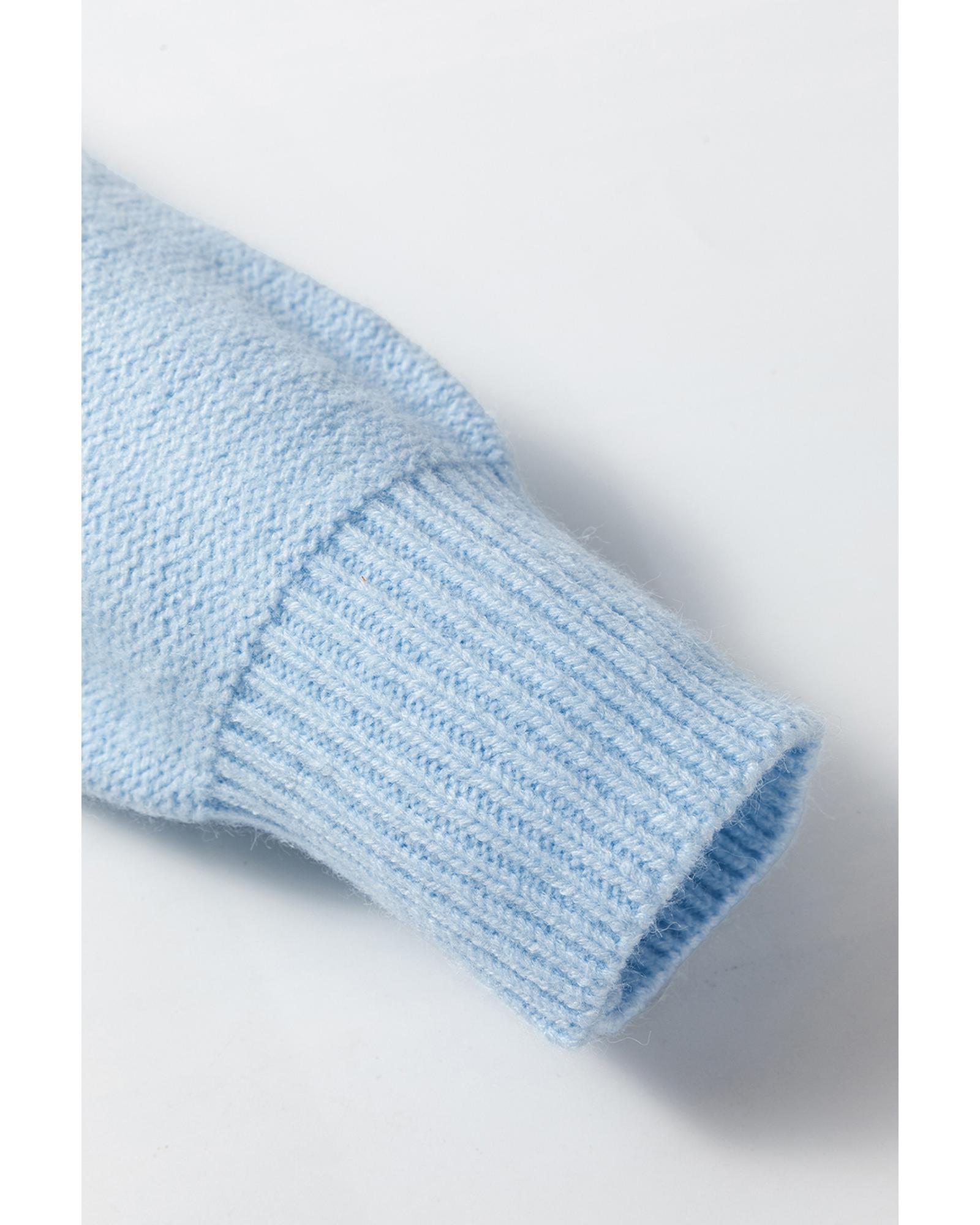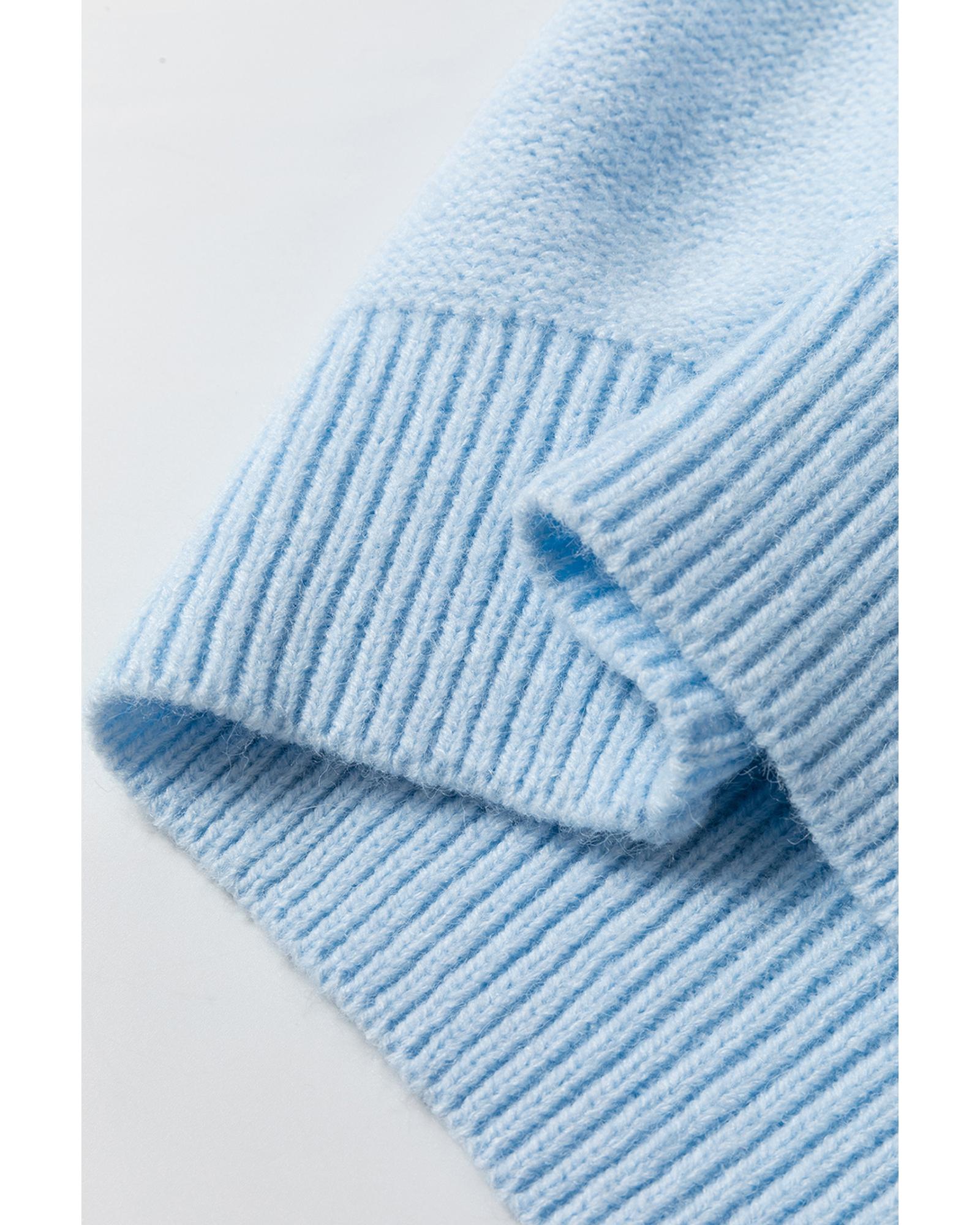Light Blue Knitted Flower Pattern Ribbed Edge Sweater – XL