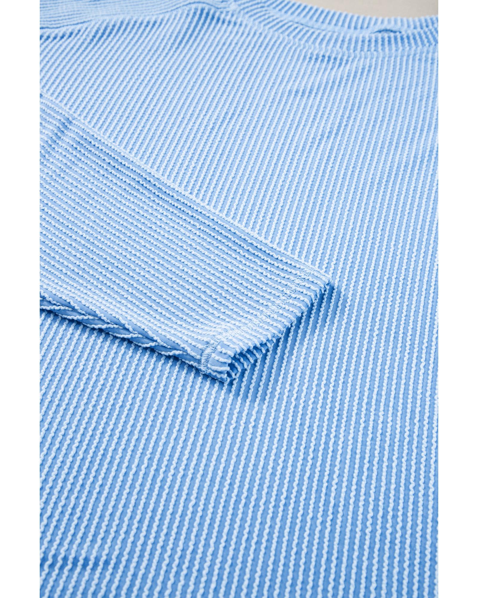 Light Blue Plus Size Ribbed Long Sleeve Top and Drawstring Shorts Set – 1X