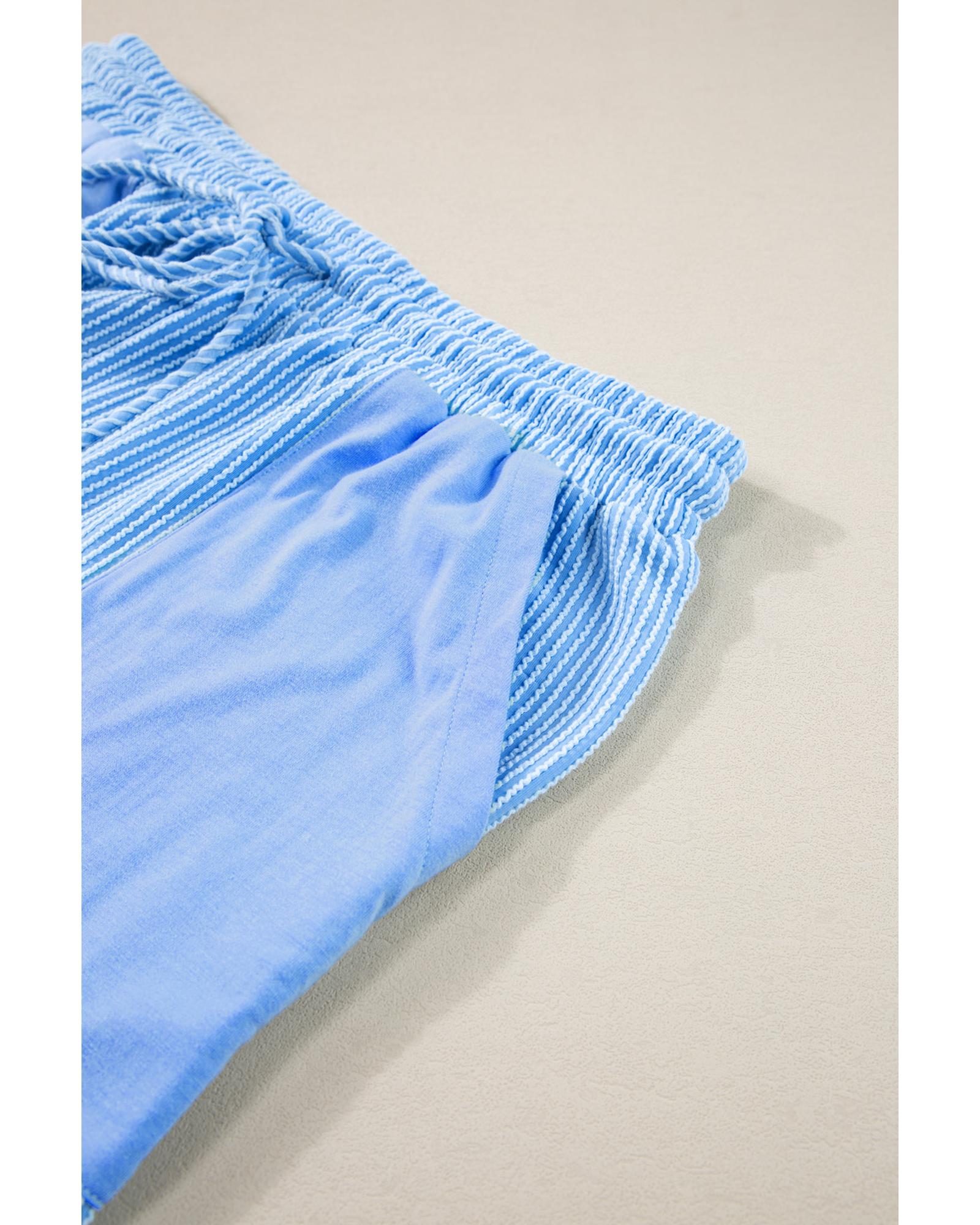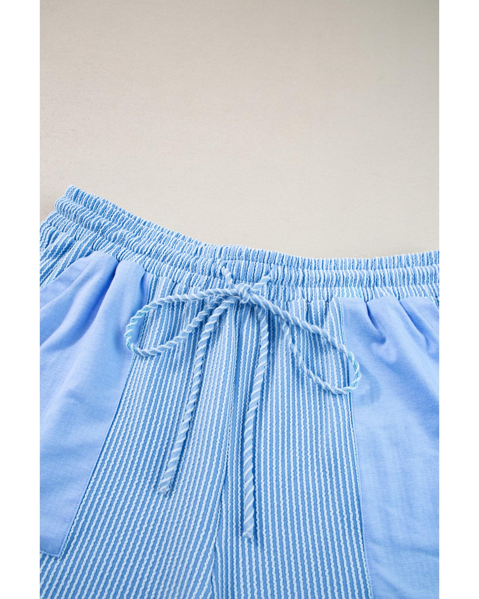This plus size ribbed long sleeve top and drawstring shorts set offers a comfortable and stylish option for casual wear. The set features a versatile light blue color and a textured ribbed design, making it suitable for layering and various casual occasions.