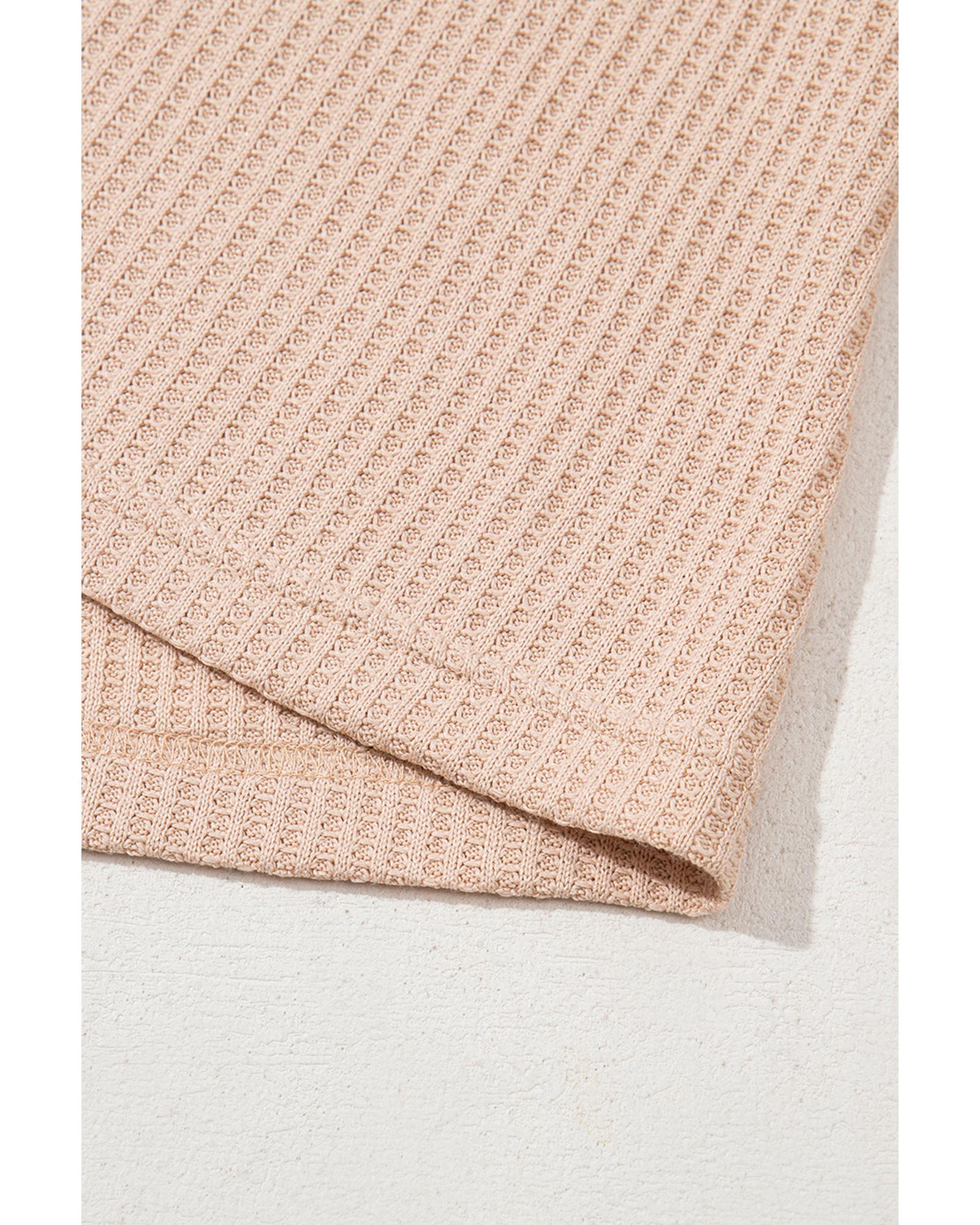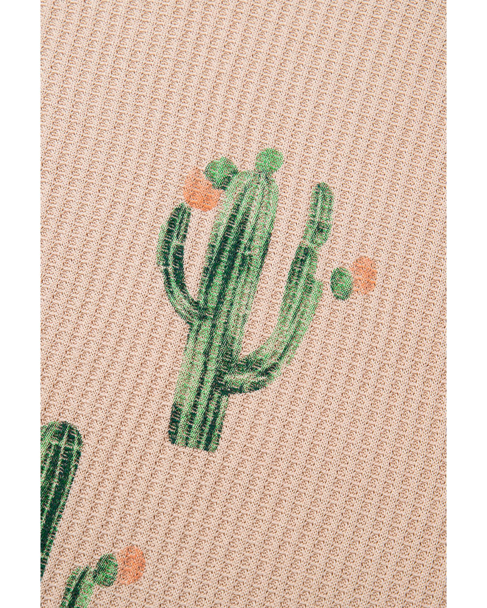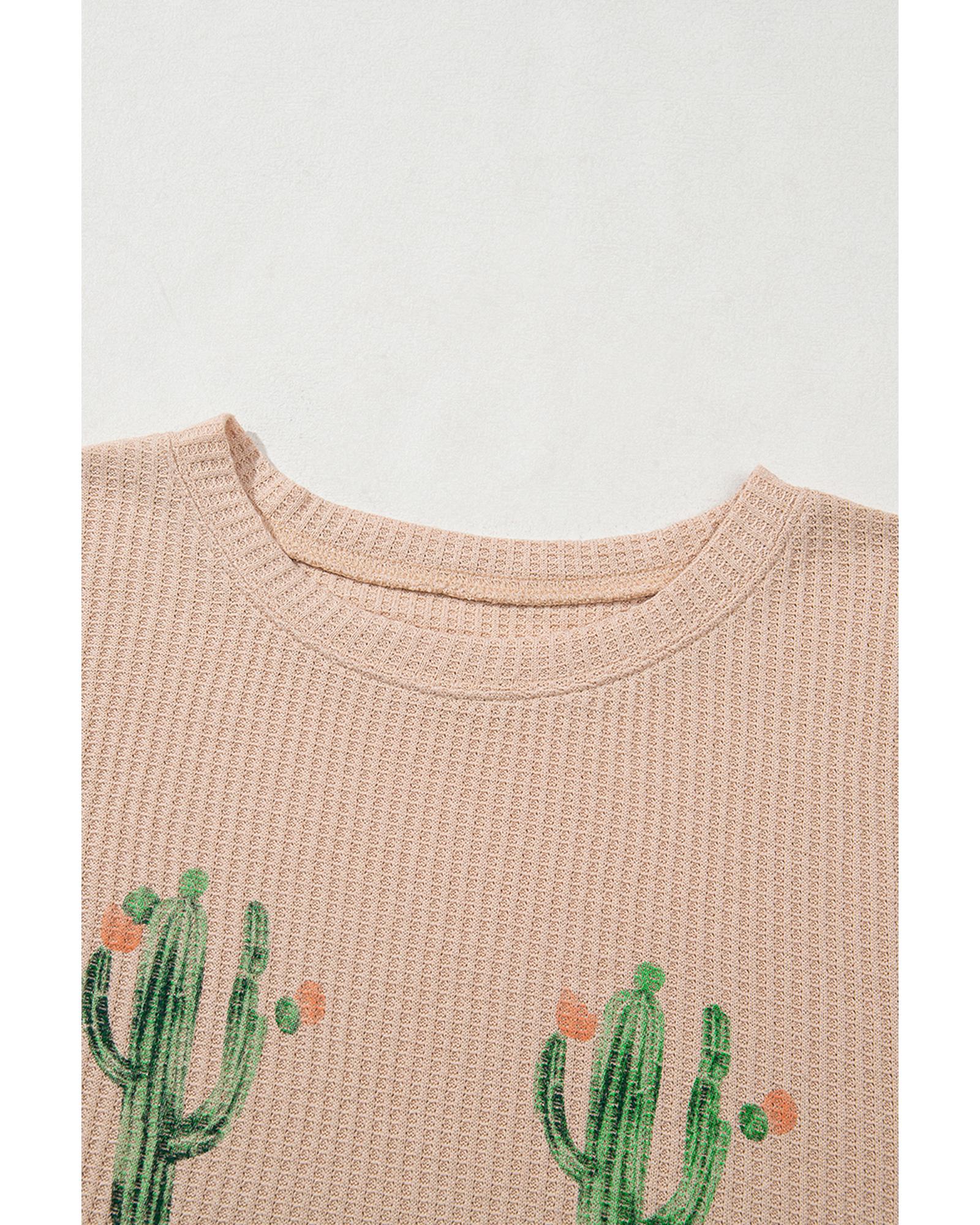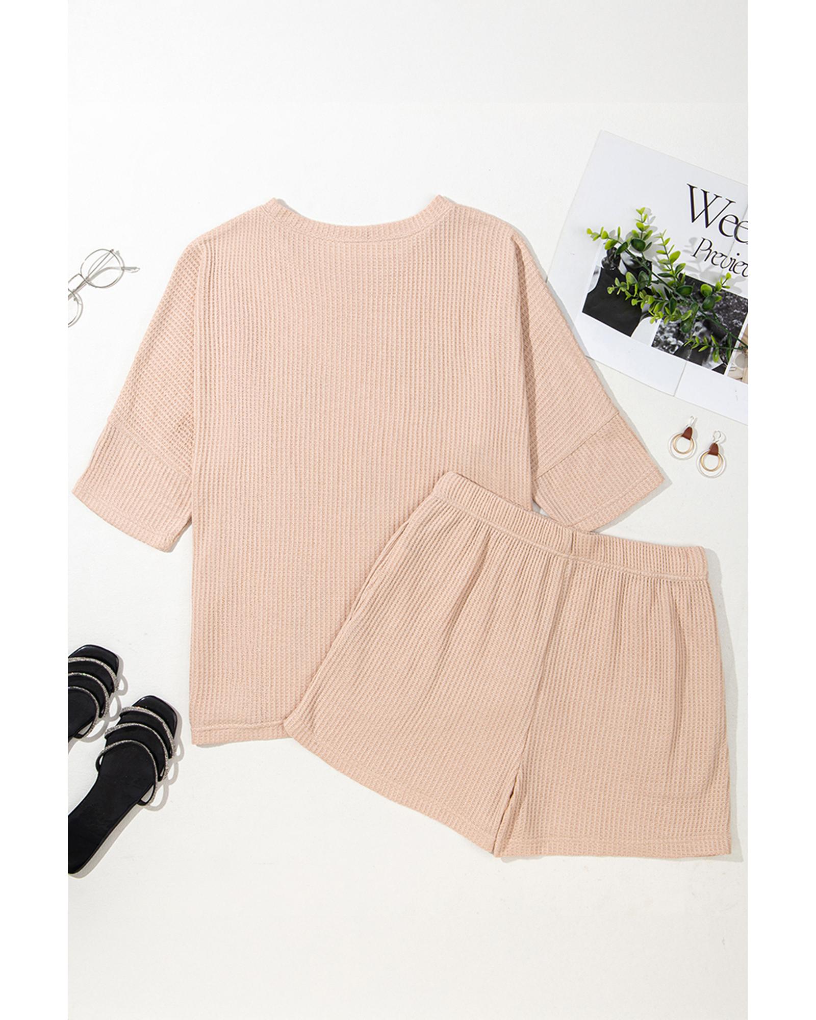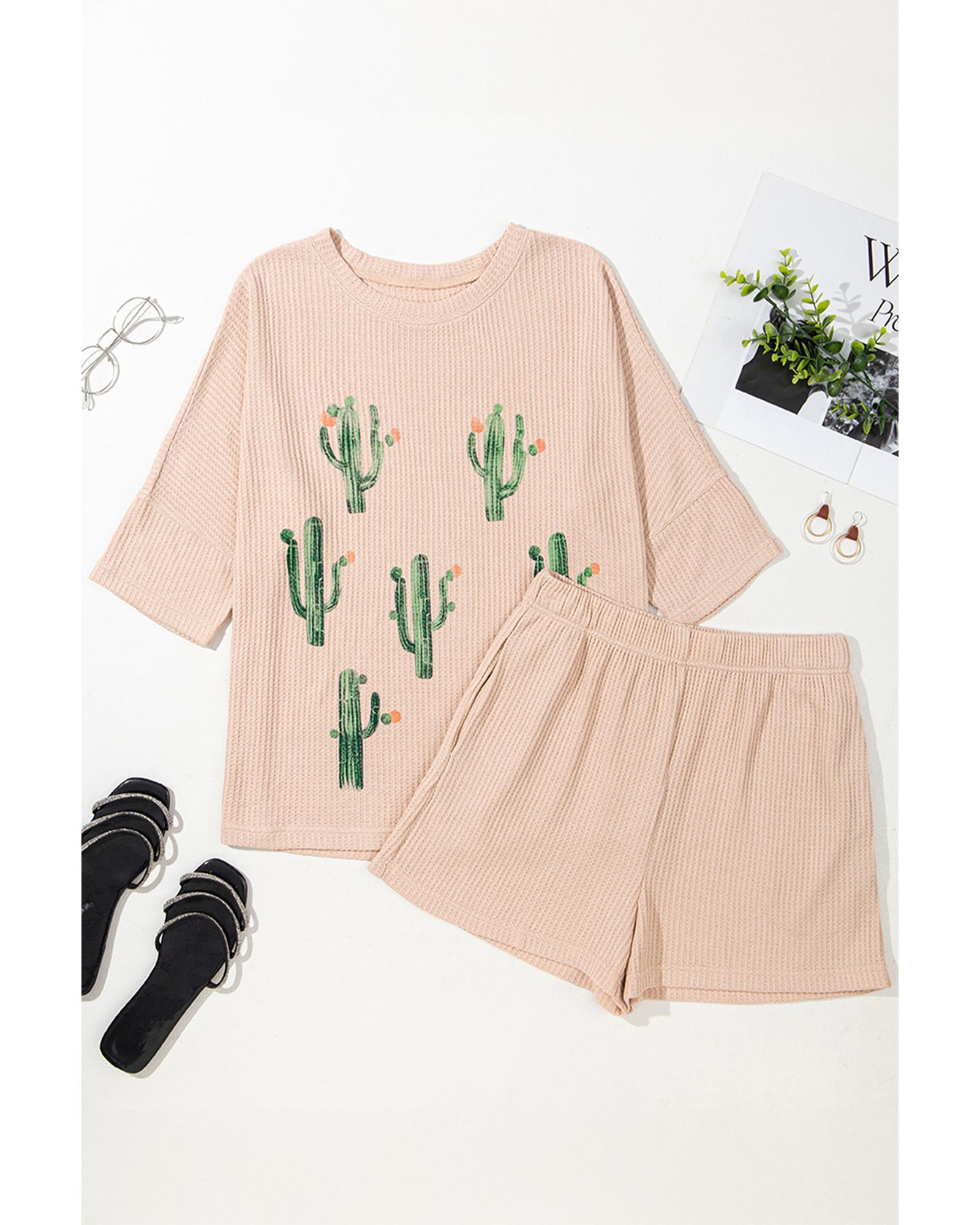 Light French Beige Cactus Forest Waffle Half Sleeve Tee Short Set – M