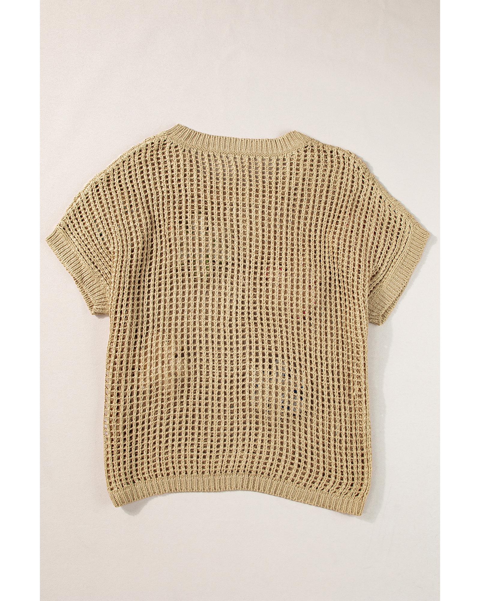 Light French Beige Crochet Flower Hollow-out Sweater T Shirt – XL