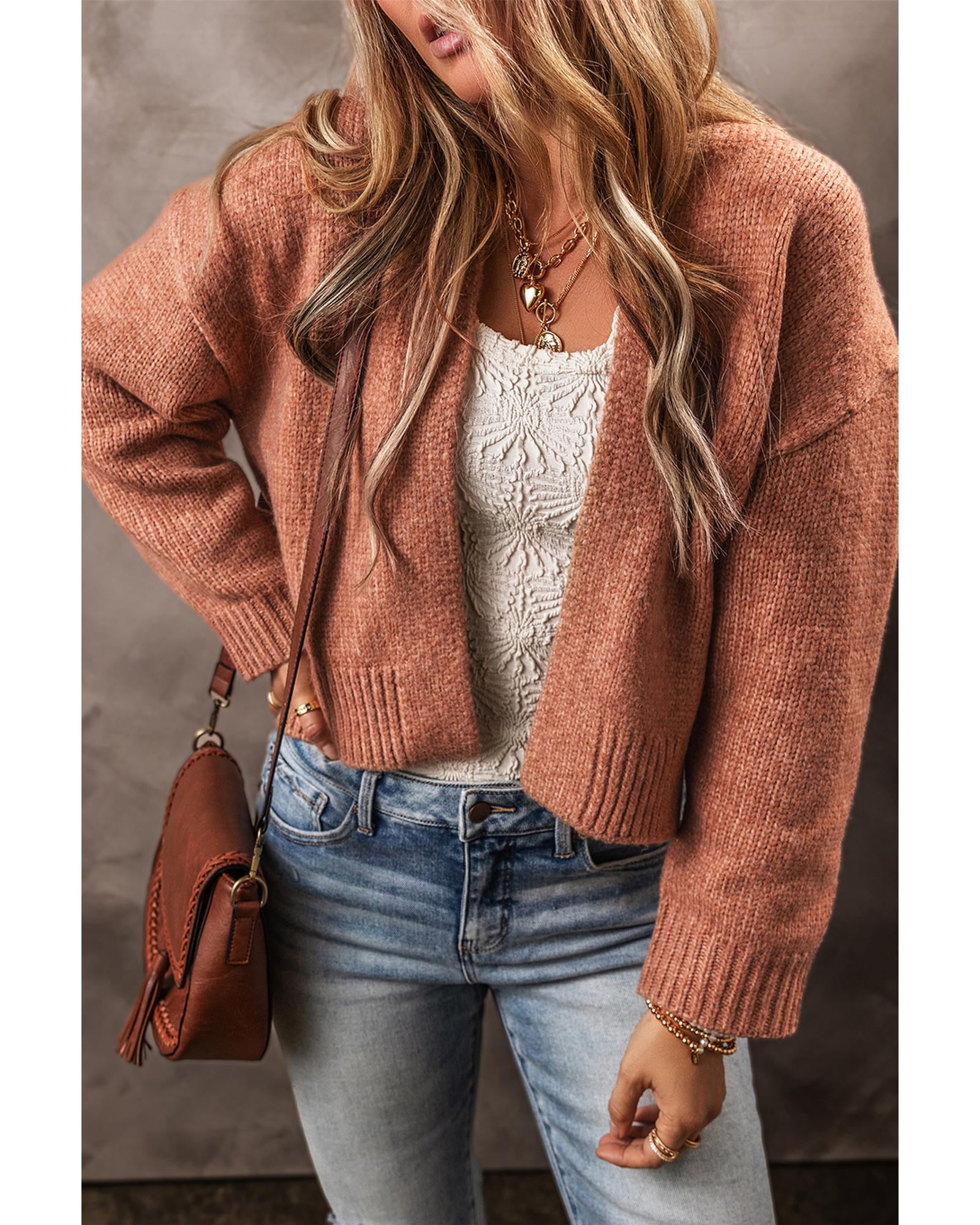 Light French Beige Drop Shoulder Open Front Cropped Cardigan – M