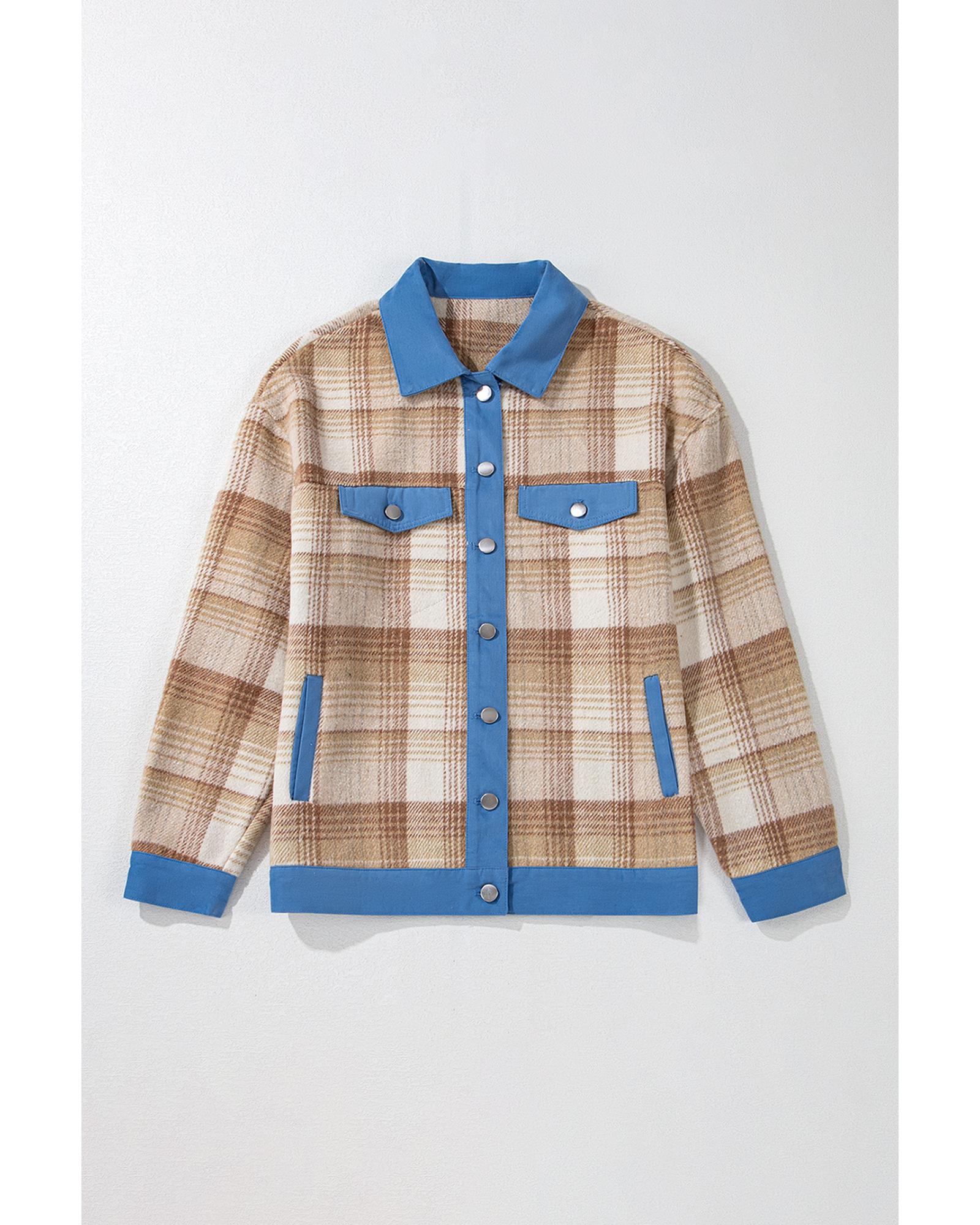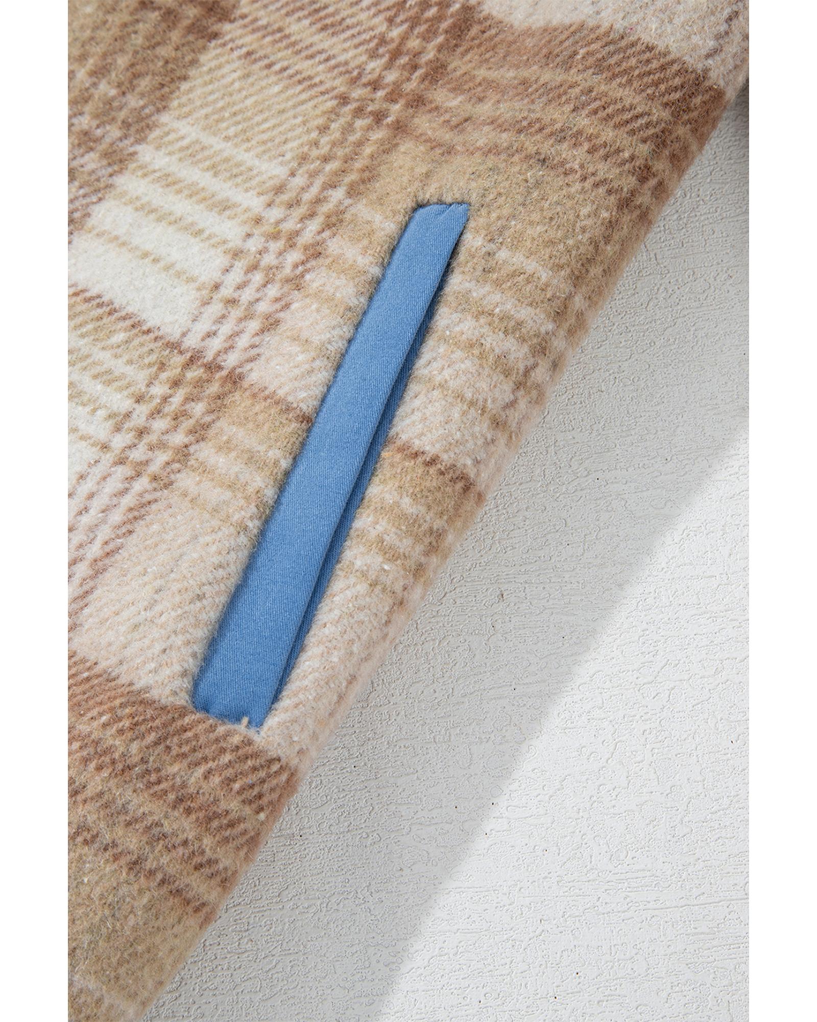 Light French Beige Plaid Patchwork Flap Detail Button Up Shacket - S Original price was: $85.99.Current price is: $46.99.