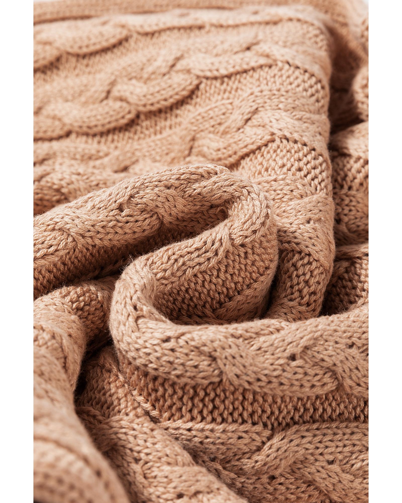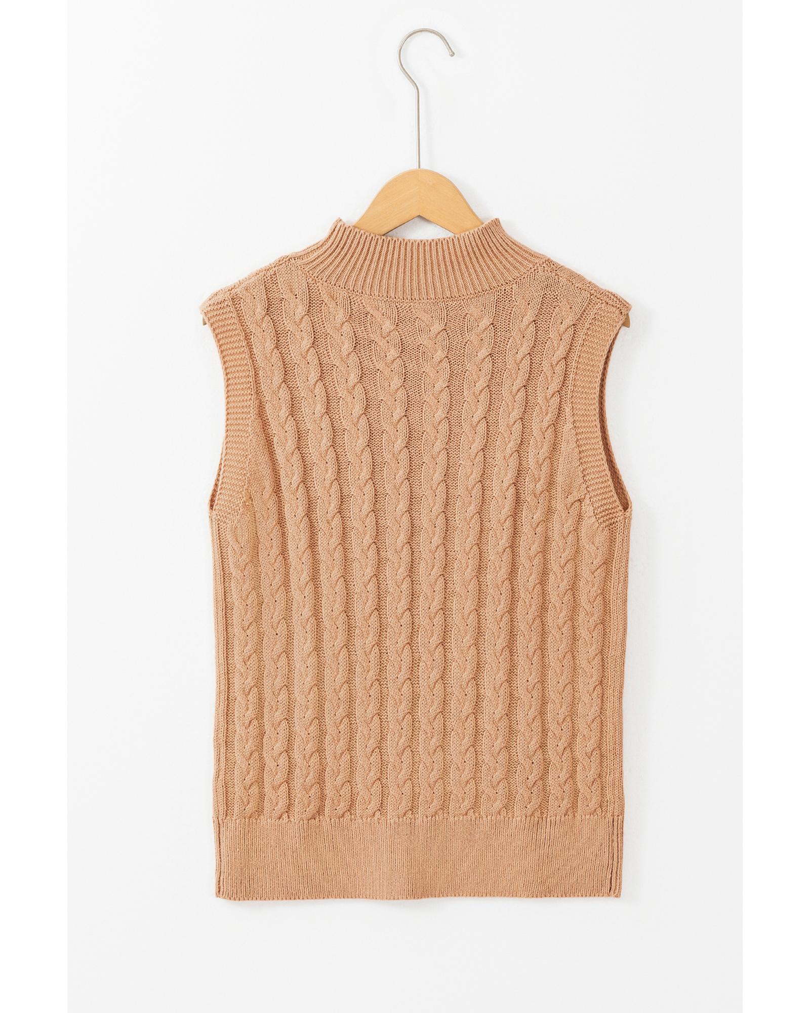 Package Content: 1 x Light French Beige Solid Color Cable Knit High Neck Tank Top