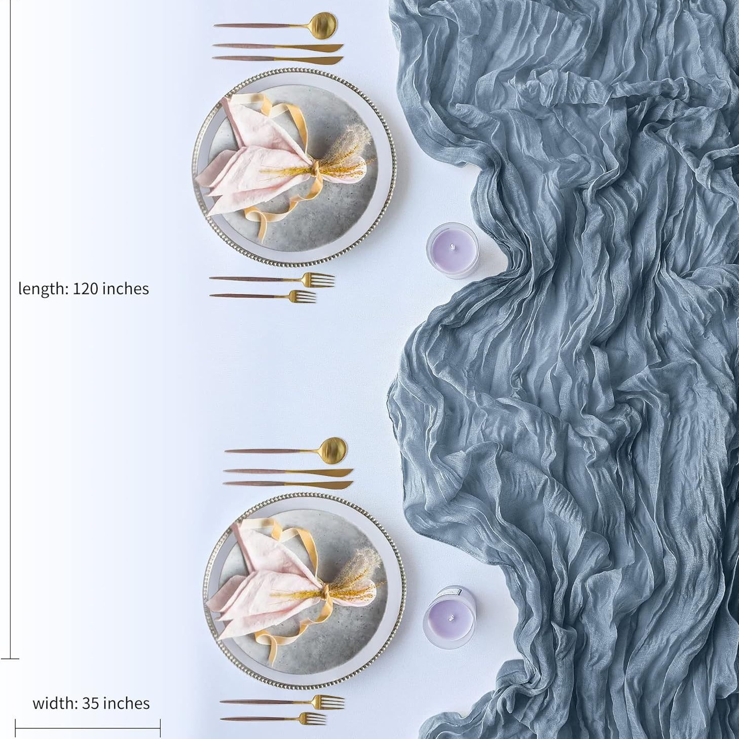 This bohemian-style gauze table runner set includes two lightweight polyester fabric runners designed to enhance your table decor for various occasions. With a soft, wrinkled texture, these runners add a rustic yet elegant touch, suitable for parties, weddings, or everyday dining. Their natural appearance and versatile size make them a charming addition to any table setting.