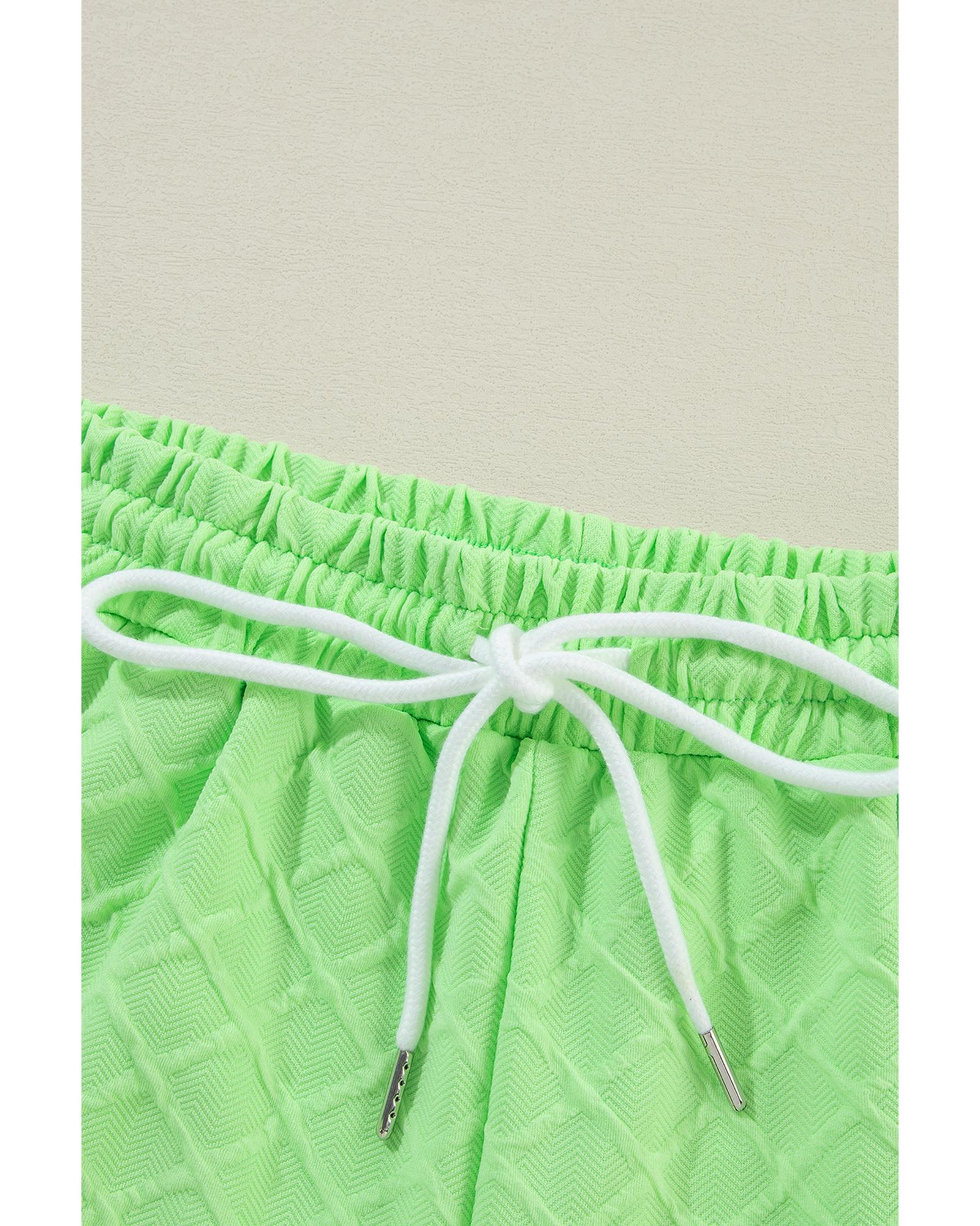 Light Green Checkered Textured Tee and Drawstring Shorts – L