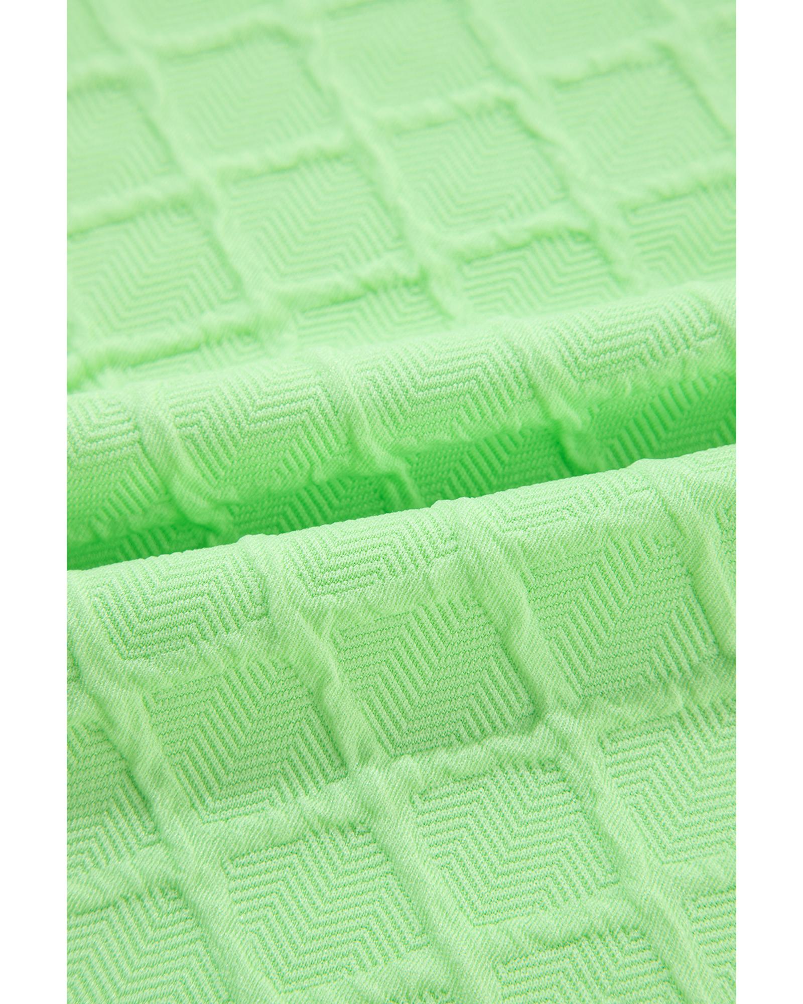 Light Green Checkered Textured Tee and Drawstring Shorts – M