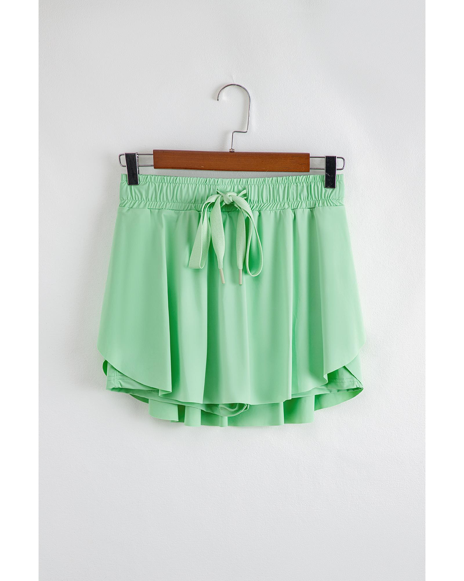 Light Green Drawstring High Waist Lined Tennis Skorts – S