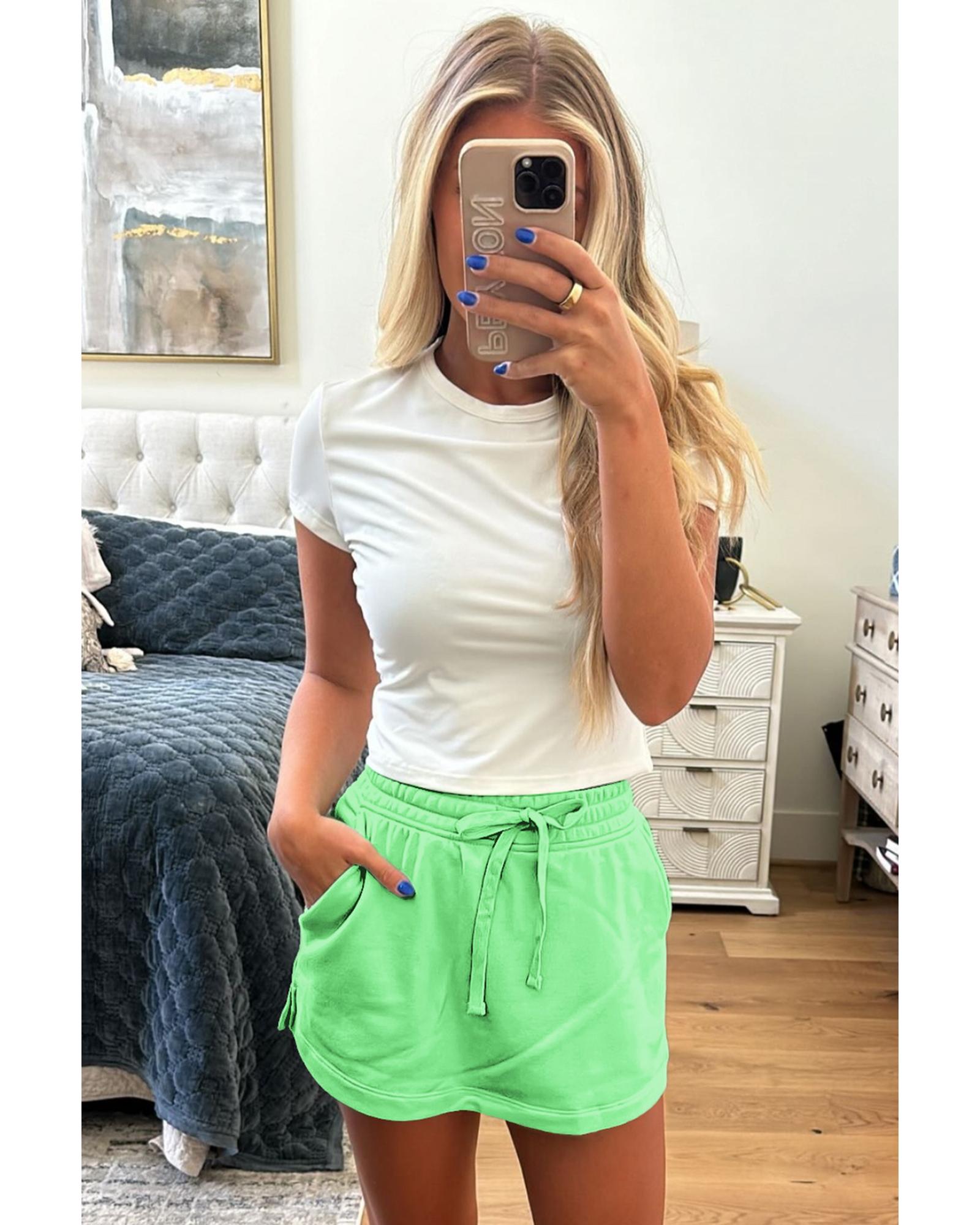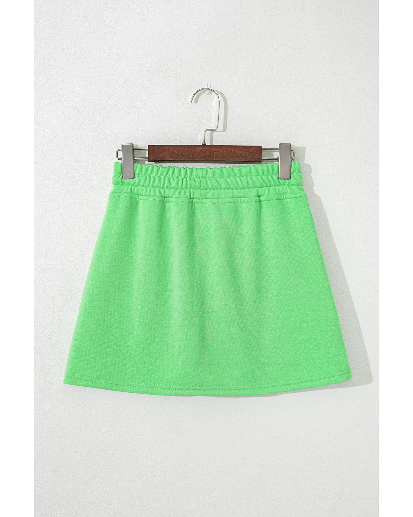 Light Green French Terry Drawstring Mini Skort with Pockets – S