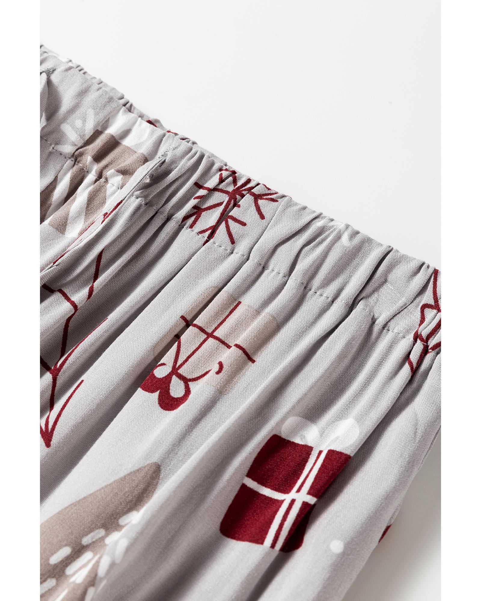 Light Grey Christmas Printed Shirt and Pants Pajama Set – L