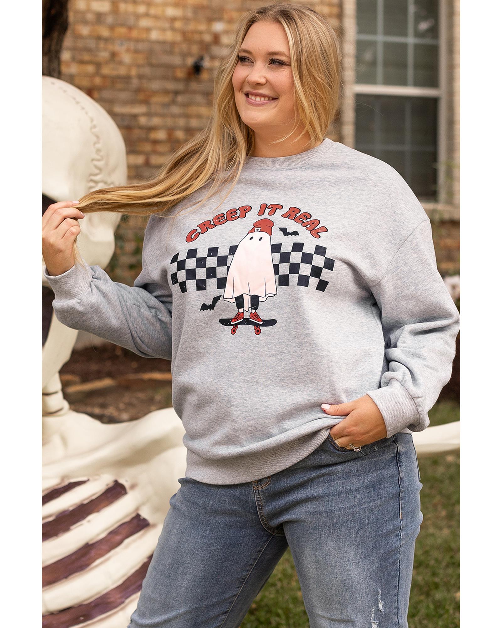 Light Grey Creep It Real Ghost Print Plus Size Sweatshirt – 4X
