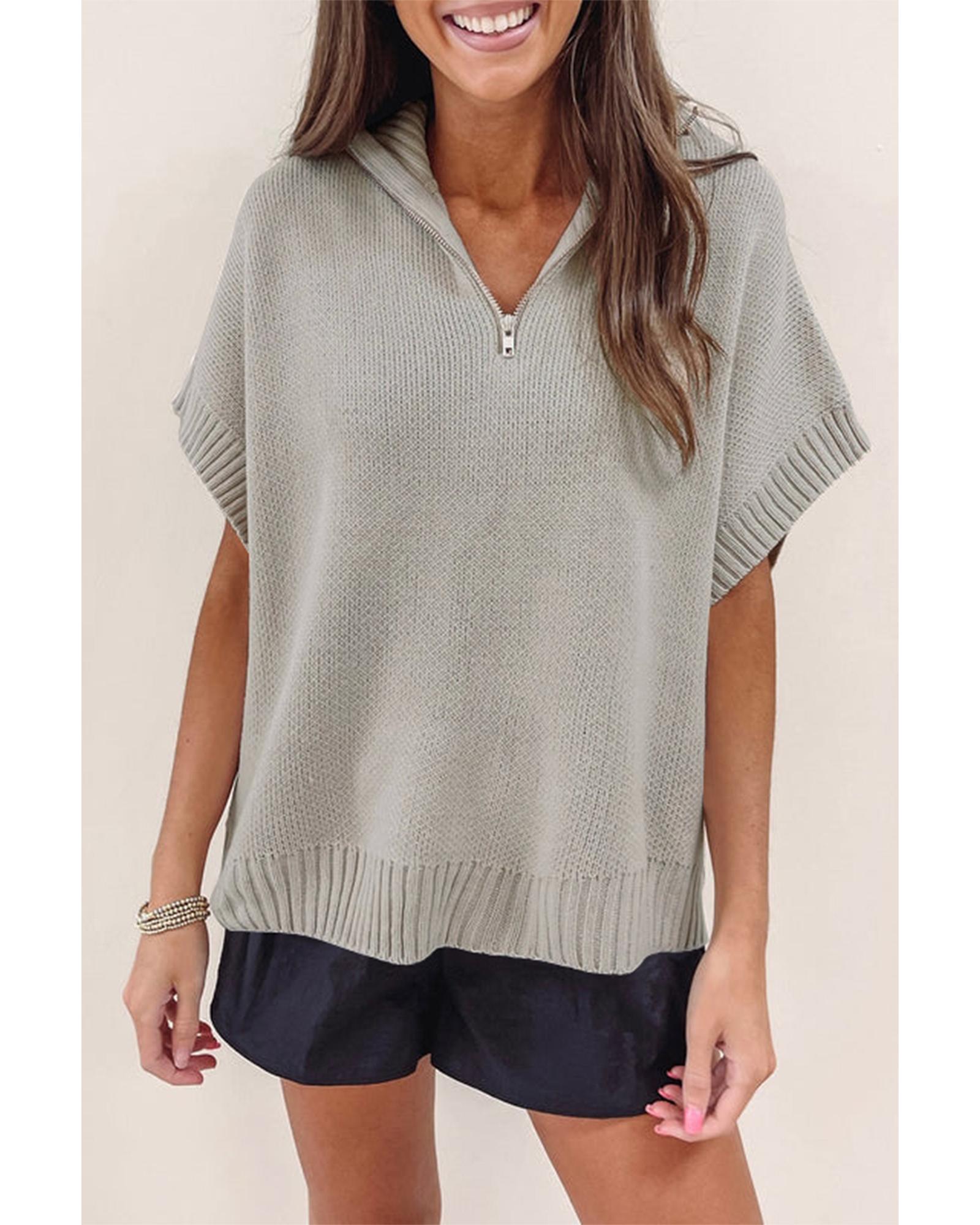 Light Grey Quarter Zip Short Batwing Sleeve Sweater – L