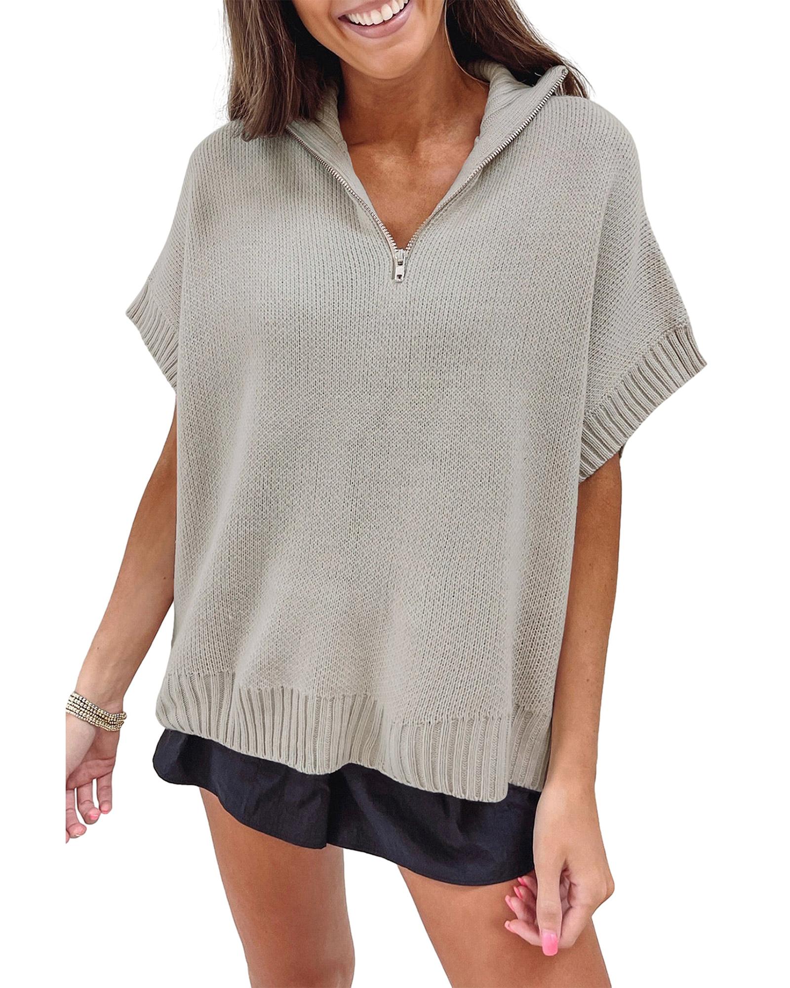 Light Grey Quarter Zip Short Batwing Sleeve Sweater – XL