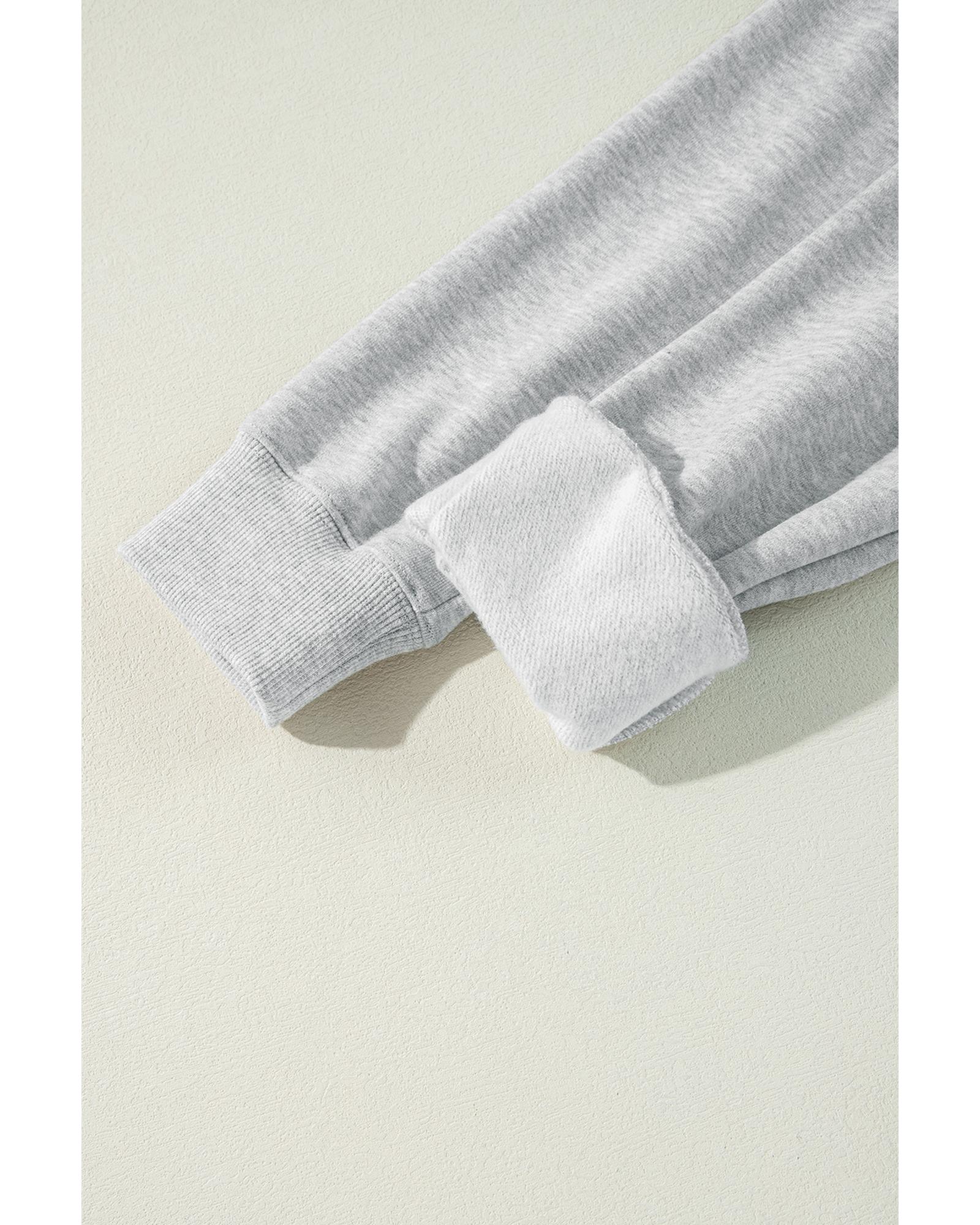 Light Grey Solid Color Fleece Lined Drawstring Hoodie with Pocket – L