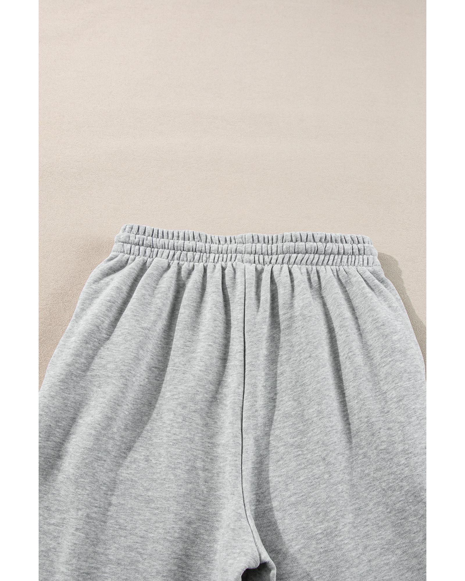 Light Grey Solid Color Fleece Lined Drawstring Waist Joggers – L