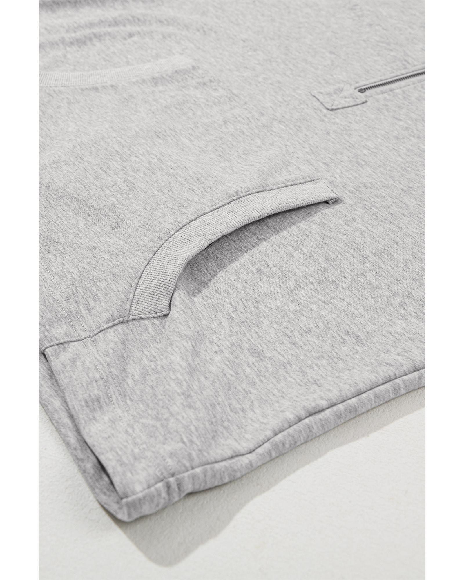 Light Grey Solid Kangaroo Pocket Half Zipper Oversized Hoodie – L