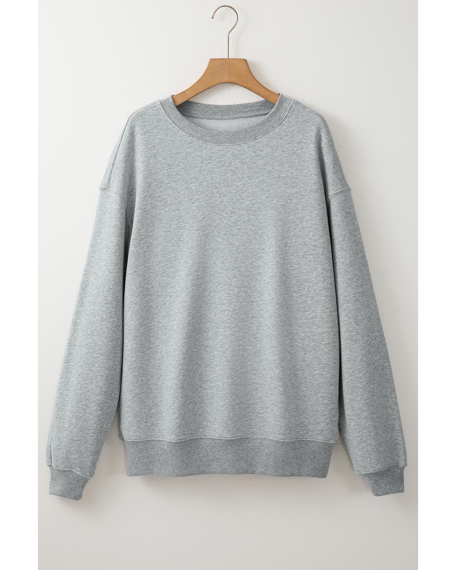 Light Grey Solid Loose Crew Neck Fleece Sweatshirt – S