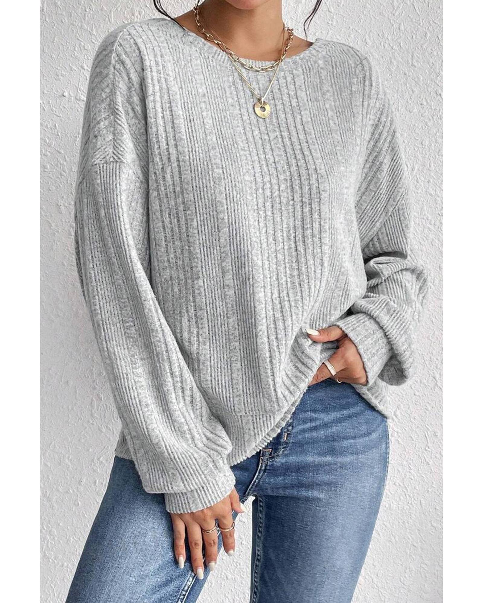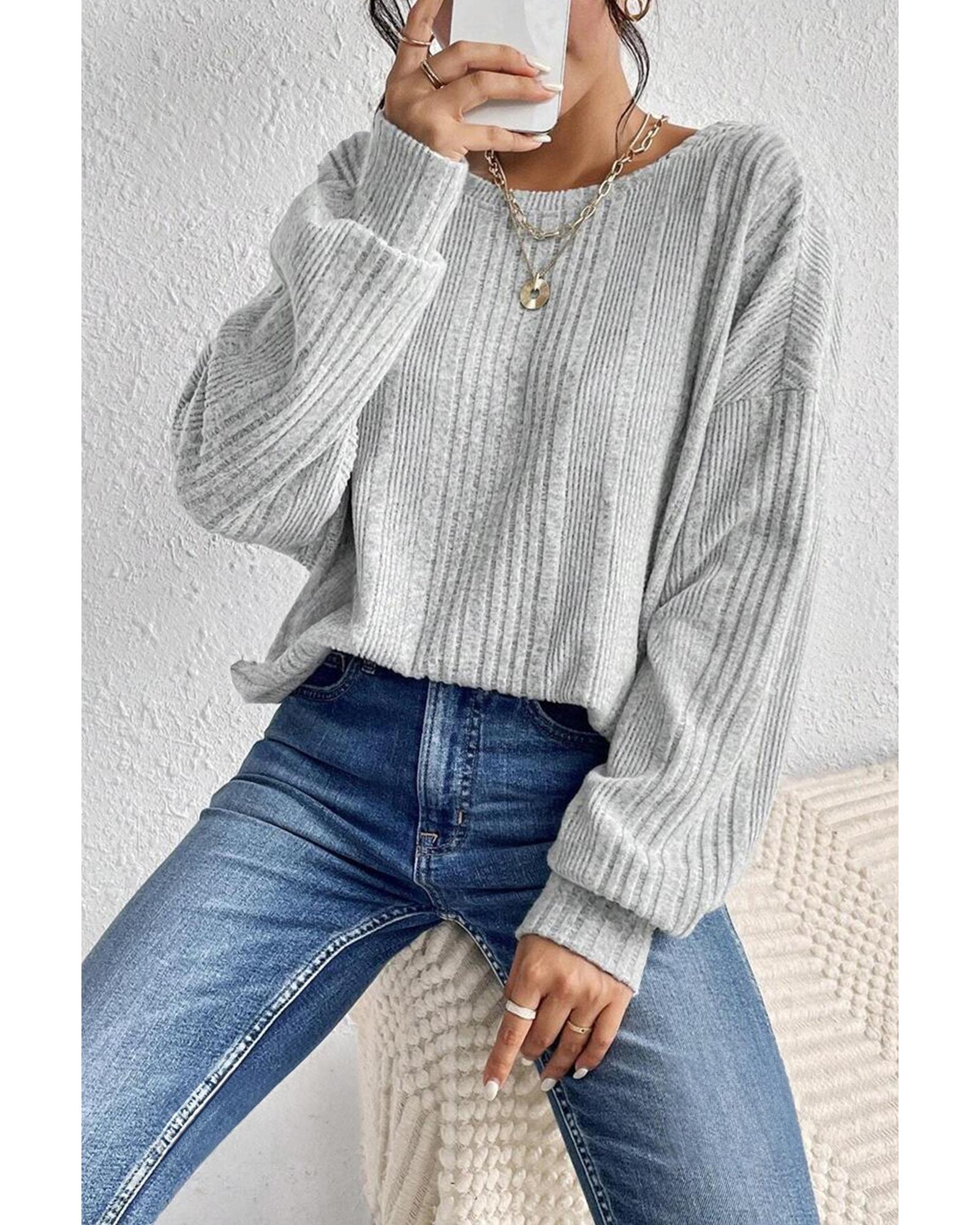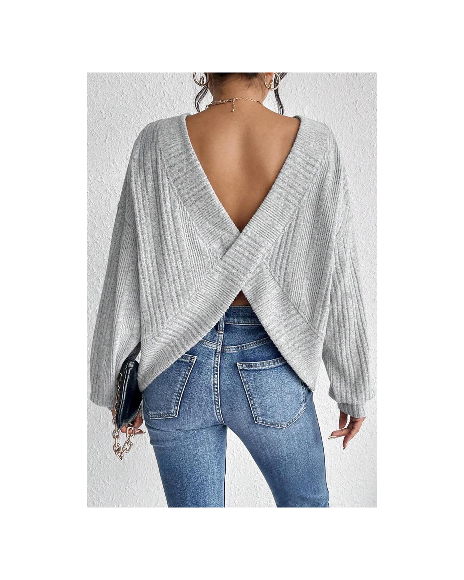 Light Grey Textured Crossover Backless Knit Long Sleeve Top – XL
