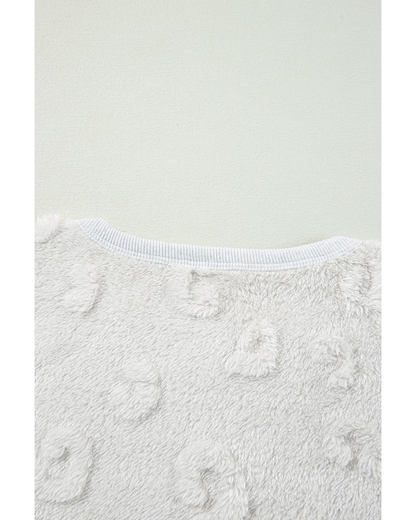 Light Grey Textured Leopard Fleece Loose Two Piece Lounge Set – XL