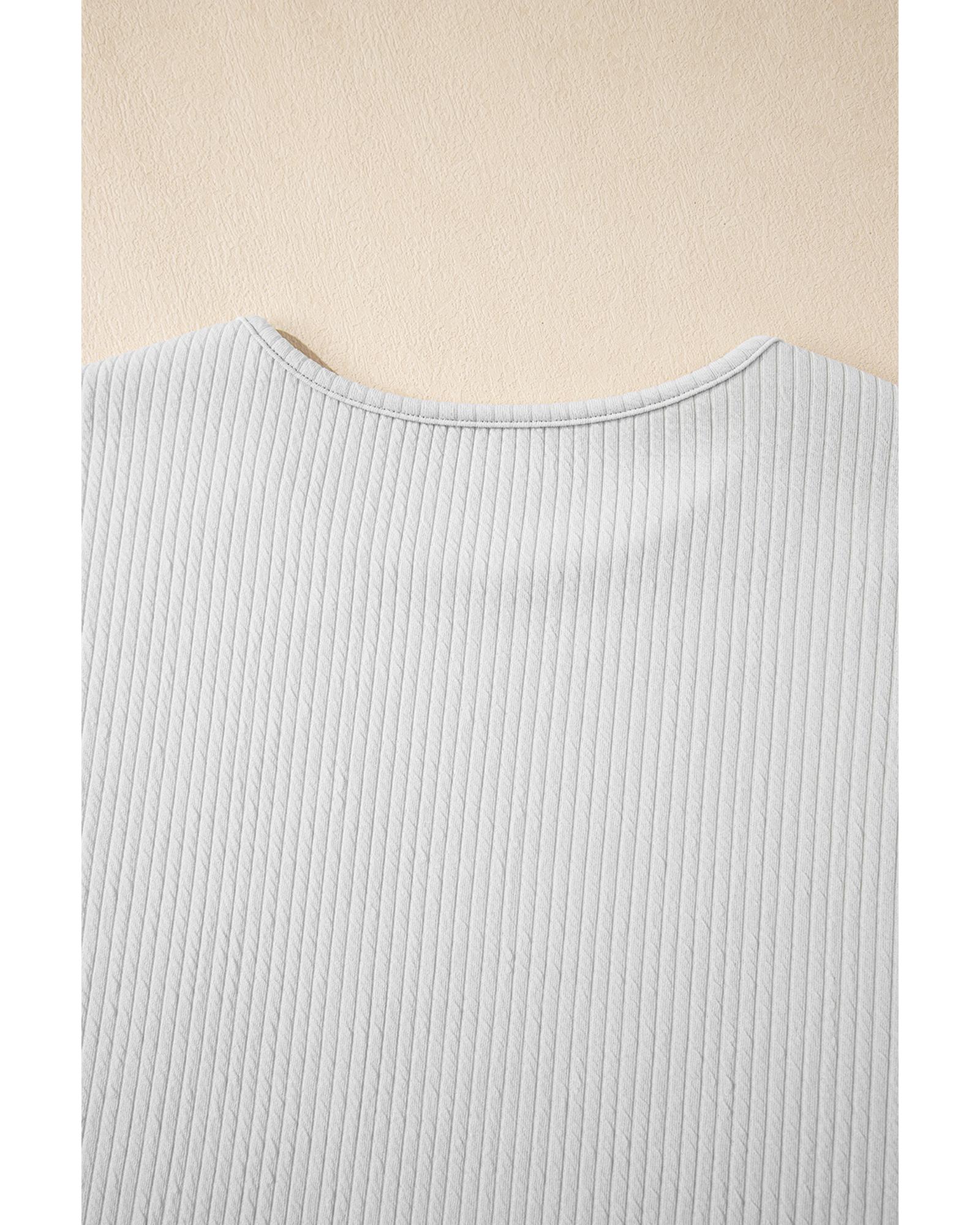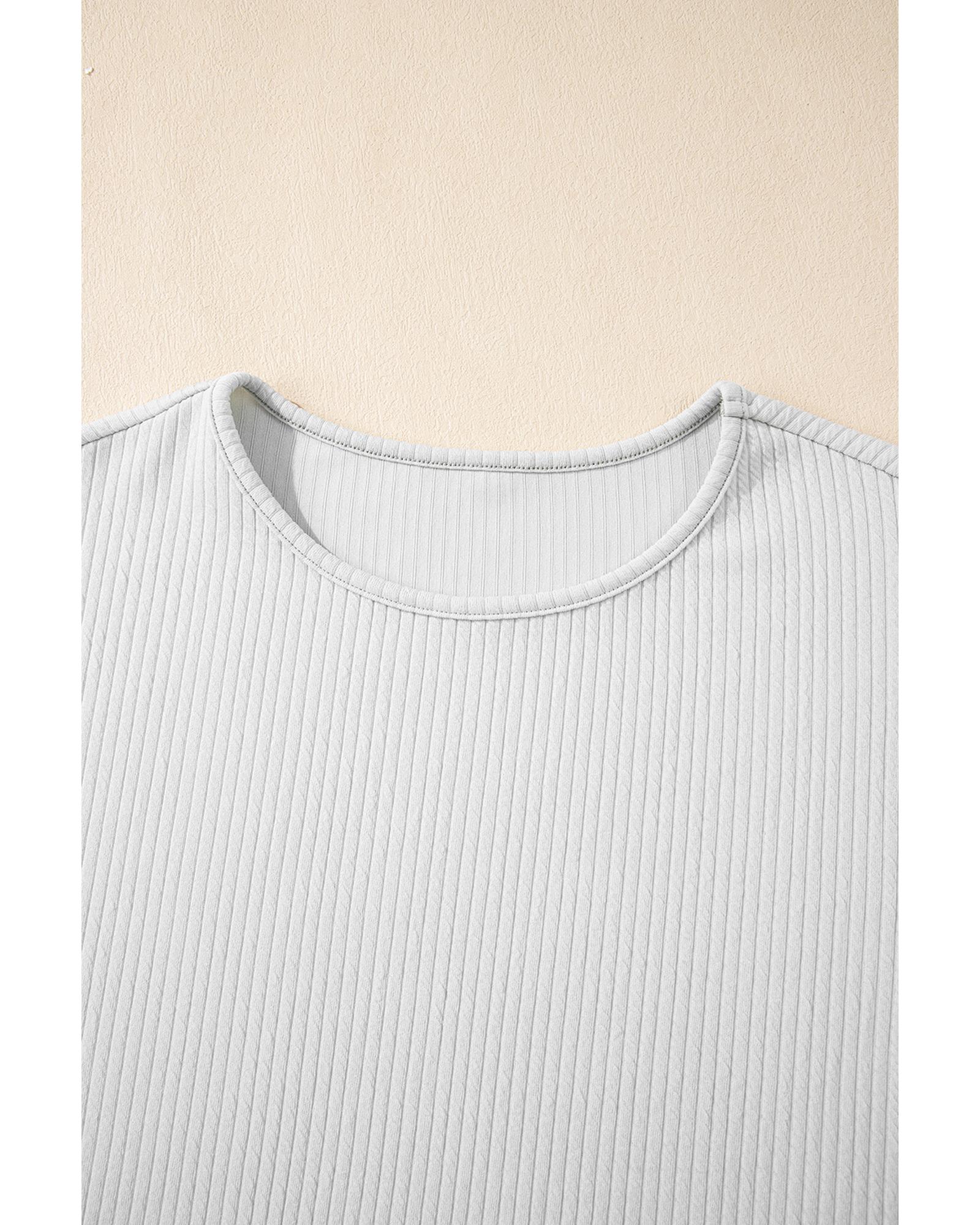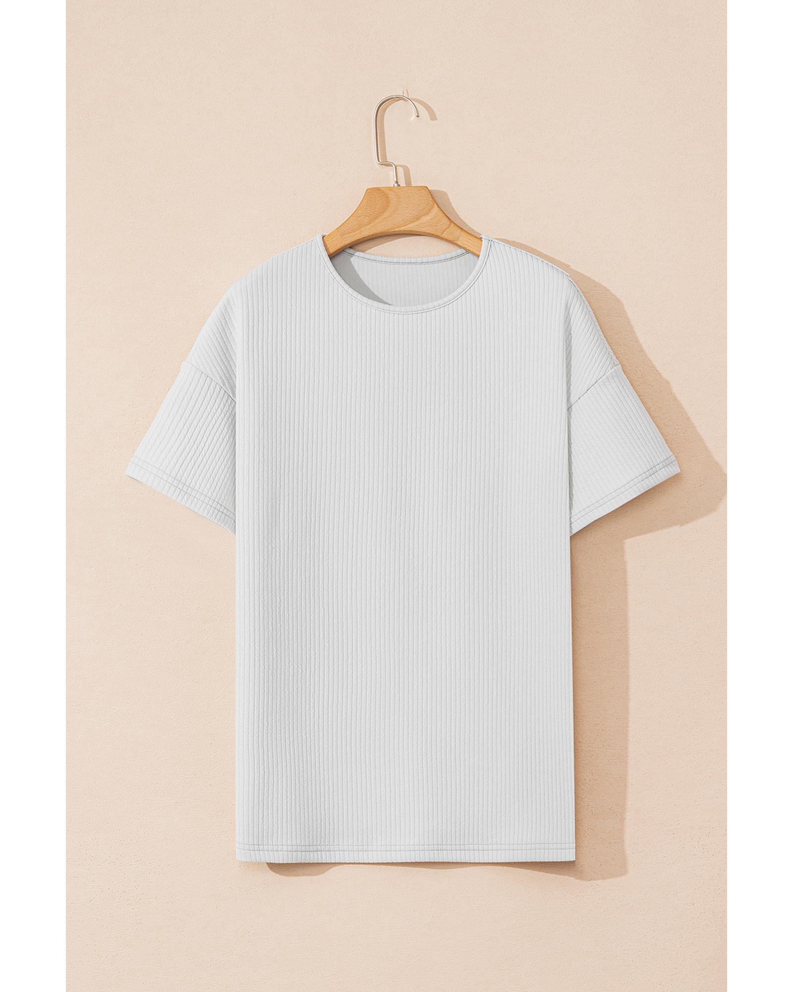 This light grey textured loose T-shirt offers a trendy and comfortable fit, suitable for various casual occasions. Designed with a classic round neck and a versatile style, it pairs well with different bottoms for a stylish look. The fabric provides medium to high elasticity, ensuring ease of movement and comfort throughout the day.