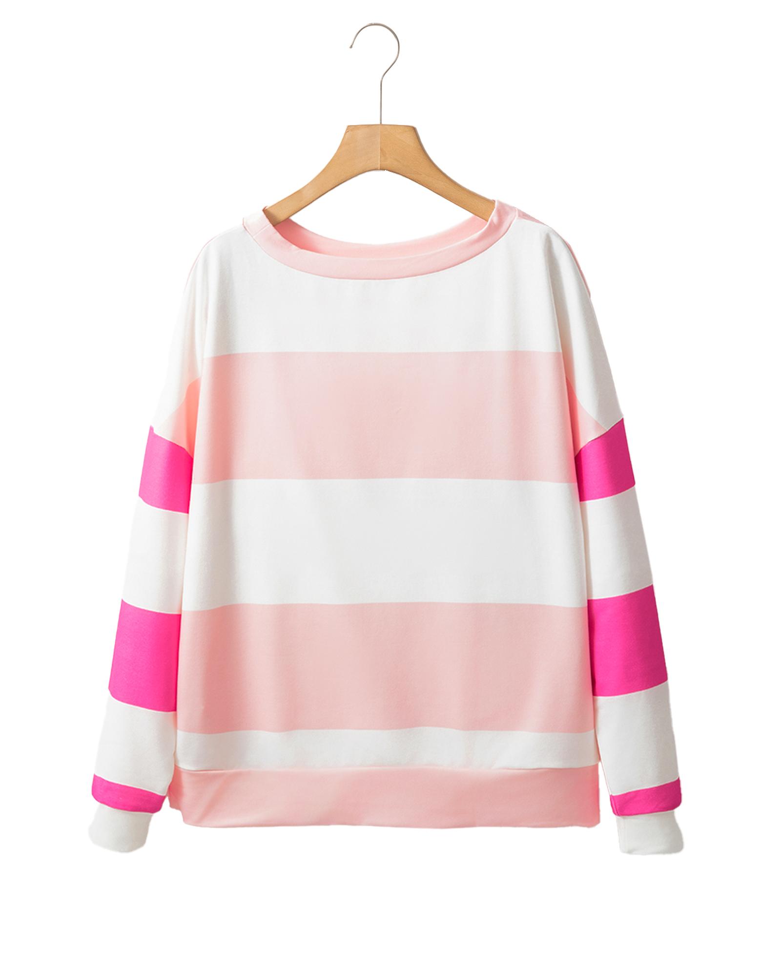 Light Pink Colorblock Striped Drop Shoulder Long Sleeve Top – L