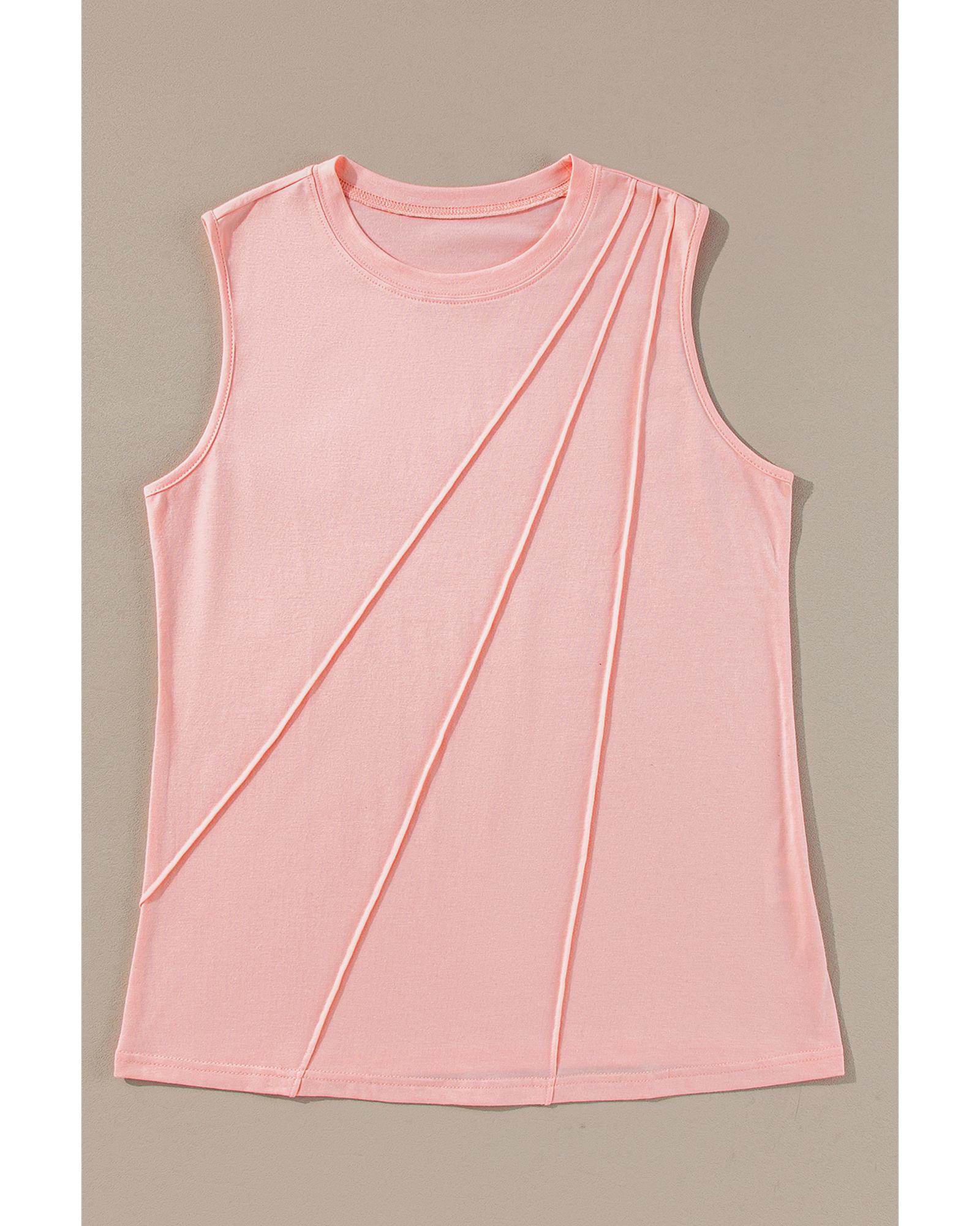 This light pink crew neck pleated tank top is designed for a trendy and fitted look, perfect for any casual occasion. Made from a soft and breathable fabric, it ensures comfort throughout the day while maintaining a stylish appearance.