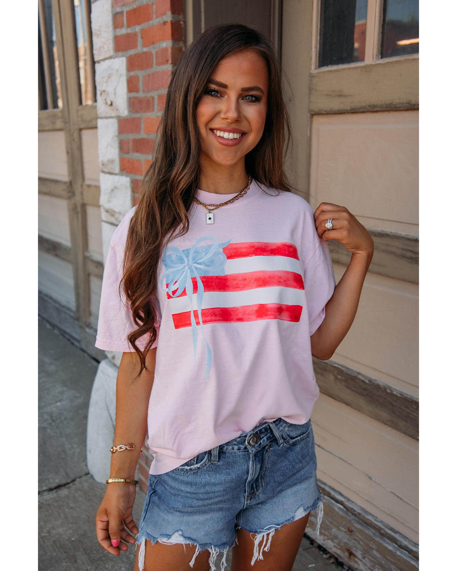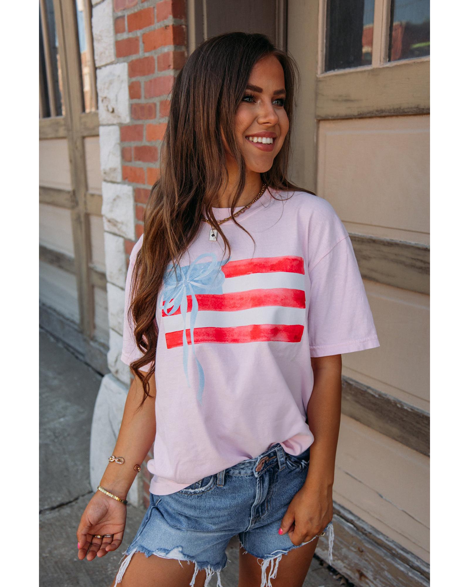 Light Pink Flag Bow Graphic Crewneck Tee – XL