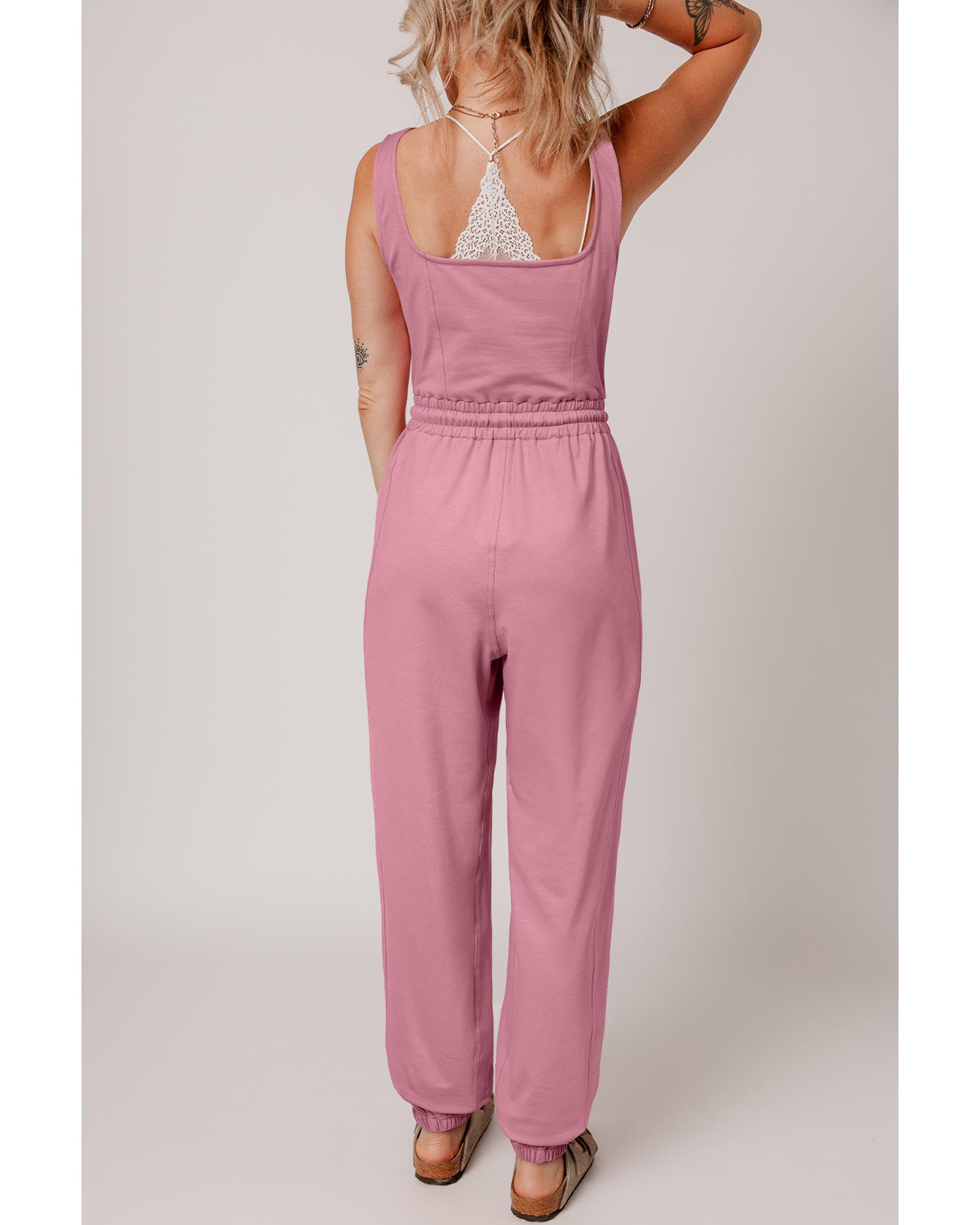 Light Pink Lace-up Elastic Waist Sleeveless Square Neck Jumpsuit – XL