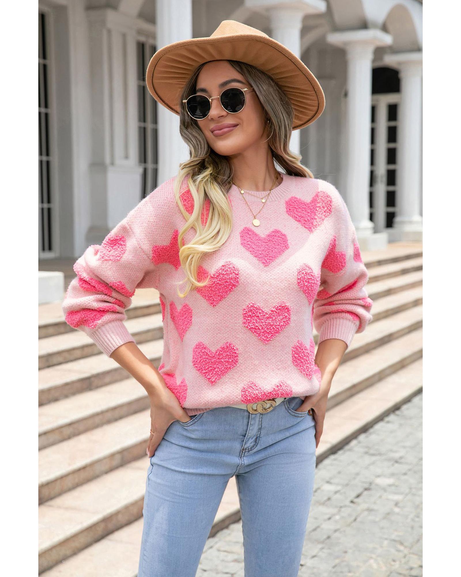 Package Content: 1 Light Pink Heart Jacquard Knit Sweater