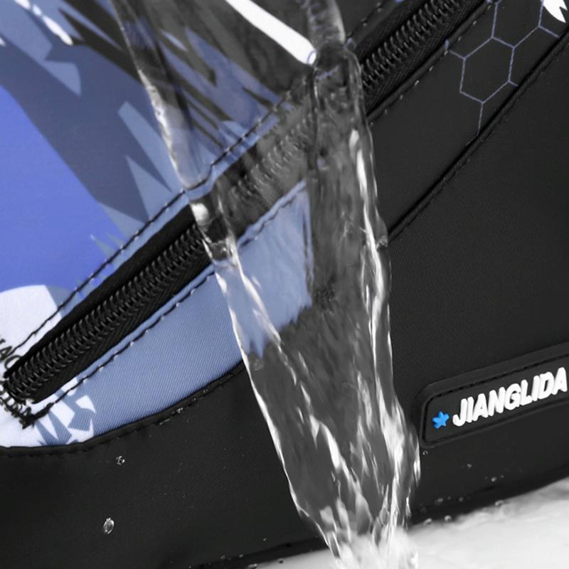 This lightweight 2-in-1 backpack and chest bag is designed for men, featuring a stylish blue football pattern and a honeycomb back pad for enhanced comfort and breathability. It offers organized storage with multiple compartments and convenient features for easy travel and daily use.