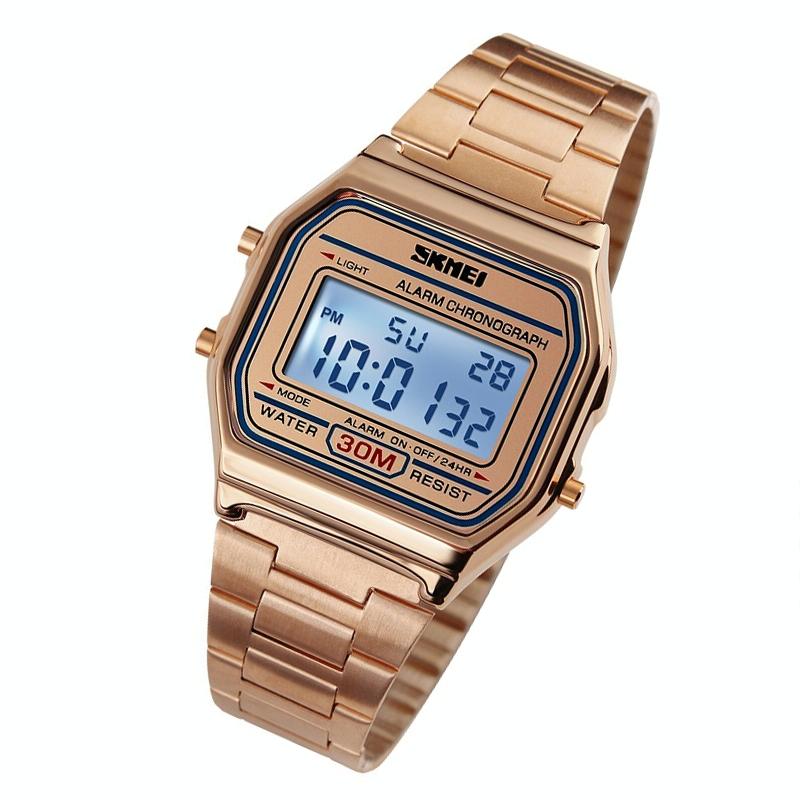 - Electronic watch with glass mirror and stainless steel buckle and strap