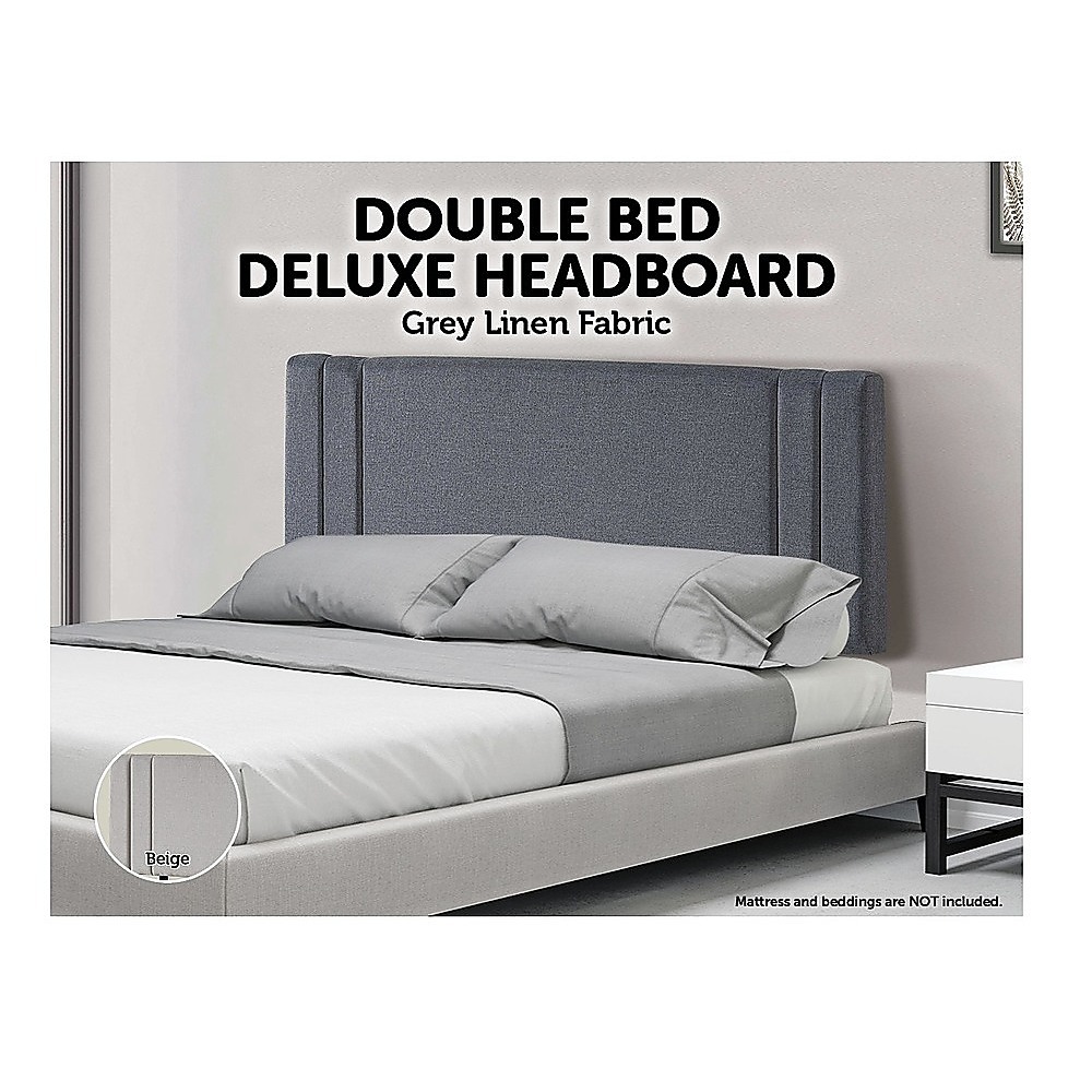 Linen Fabric Double Bed Deluxe Headboard Bedhead – Grey