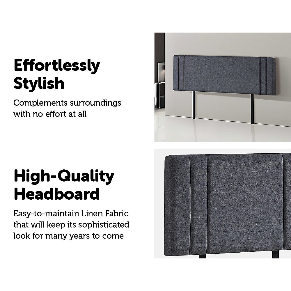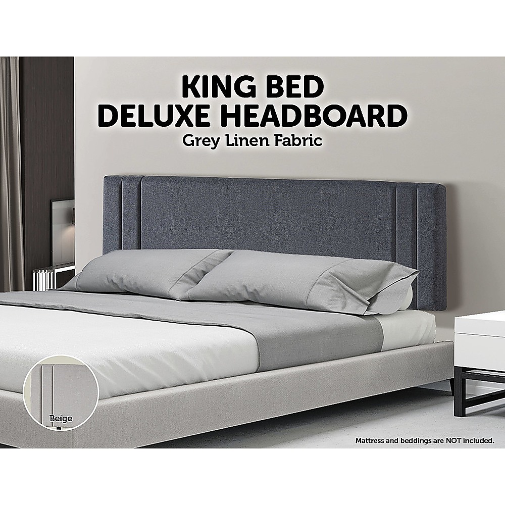 Linen Fabric King Bed Deluxe Headboard Bedhead – Grey