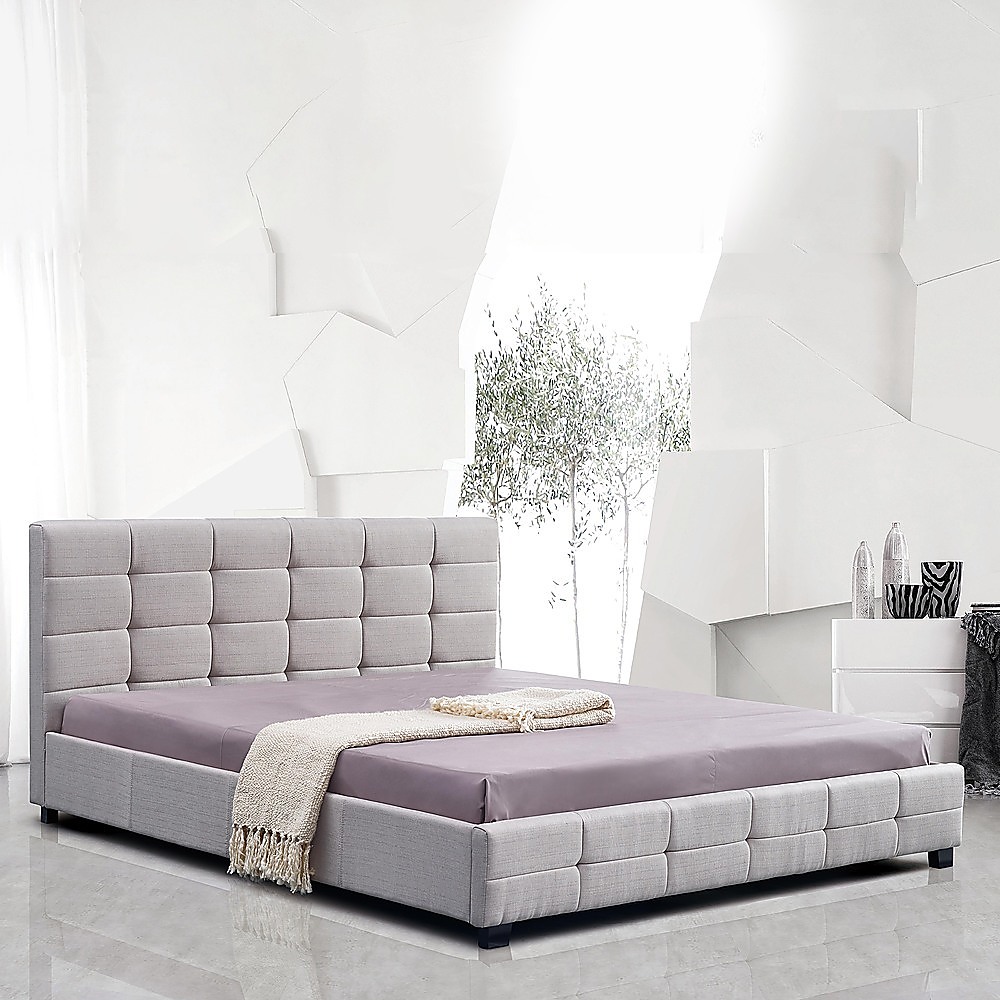 This bed frame features a modern design with a button tufted headboard, providing an elegant and luxurious look for the master bedroom. It combines style, durability, and affordability, making it a practical addition to any bedroom decor.