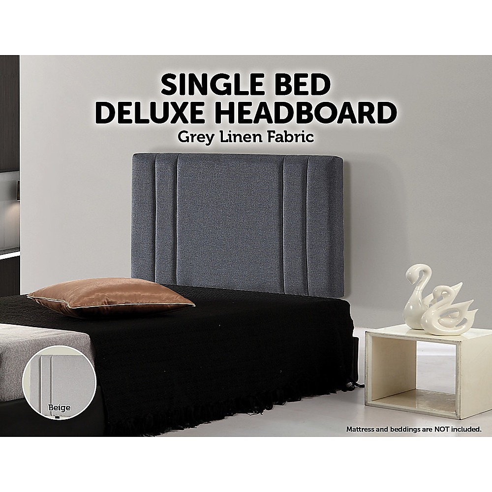 Linen Fabric Single Bed Deluxe Headboard Bedhead – Grey