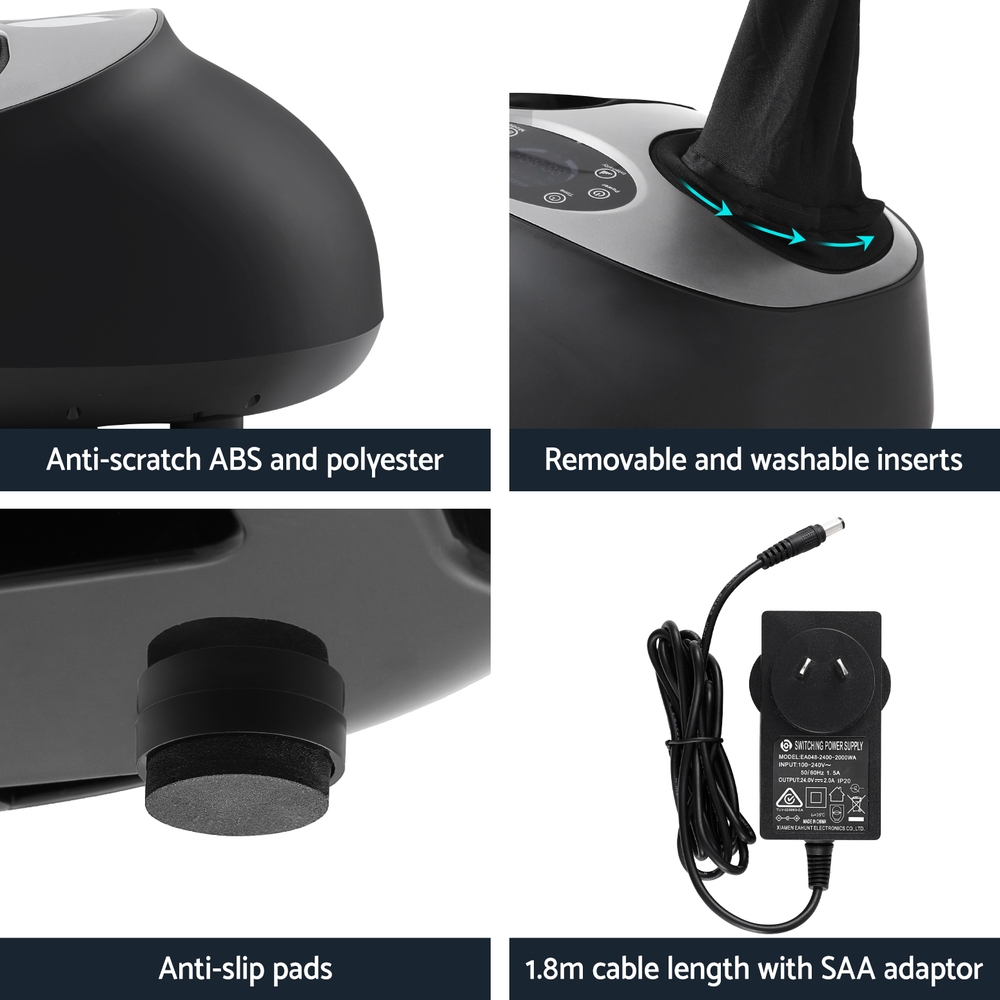 This electric foot massager is designed to provide a comfortable and relaxing experience for users. It features adjustable settings, heating functions, and targeted air-pressure kneading pads to soothe tired feet and improve circulation. The device is suitable for a wide range of foot sizes and offers multiple massage modes for personalized relaxation.