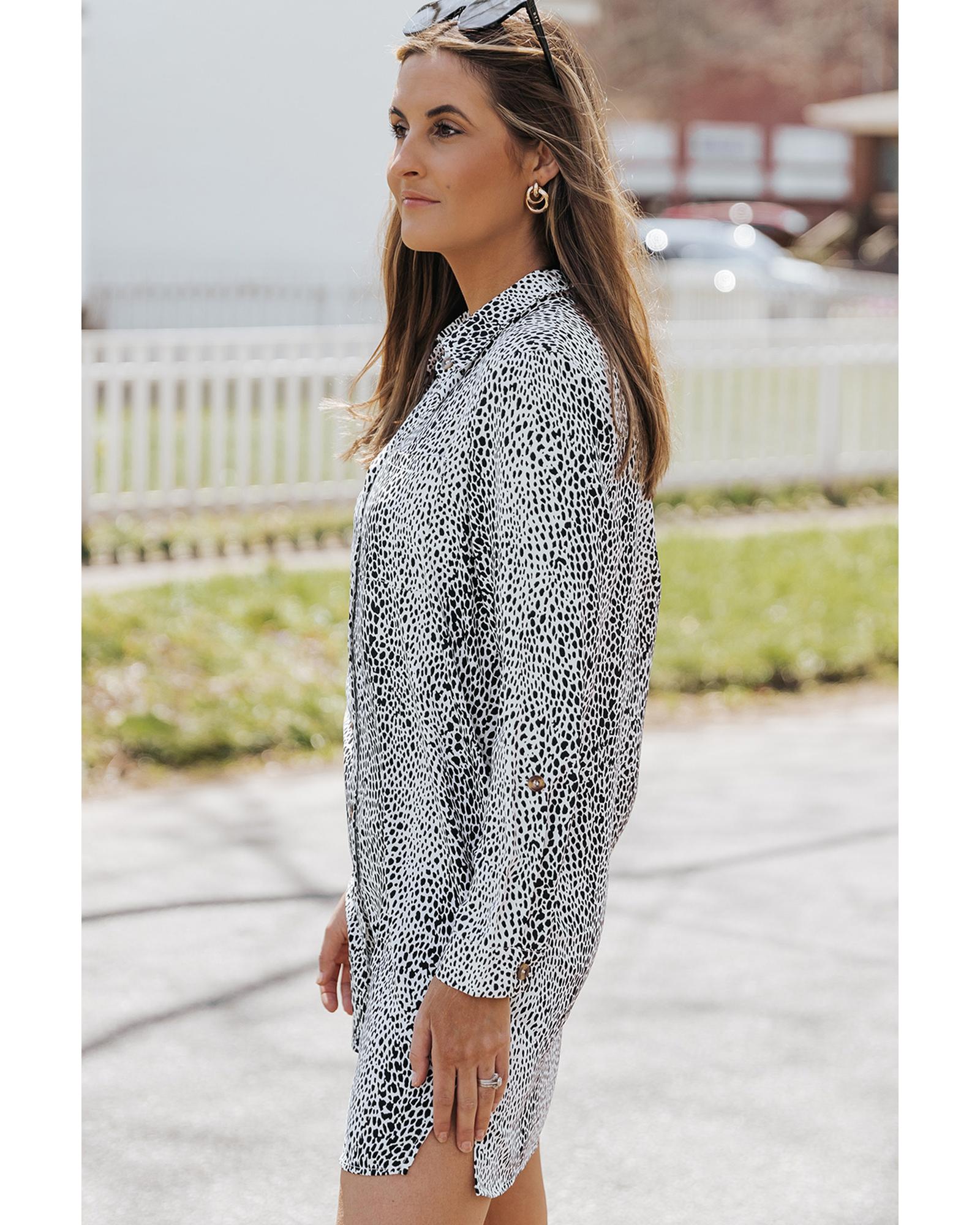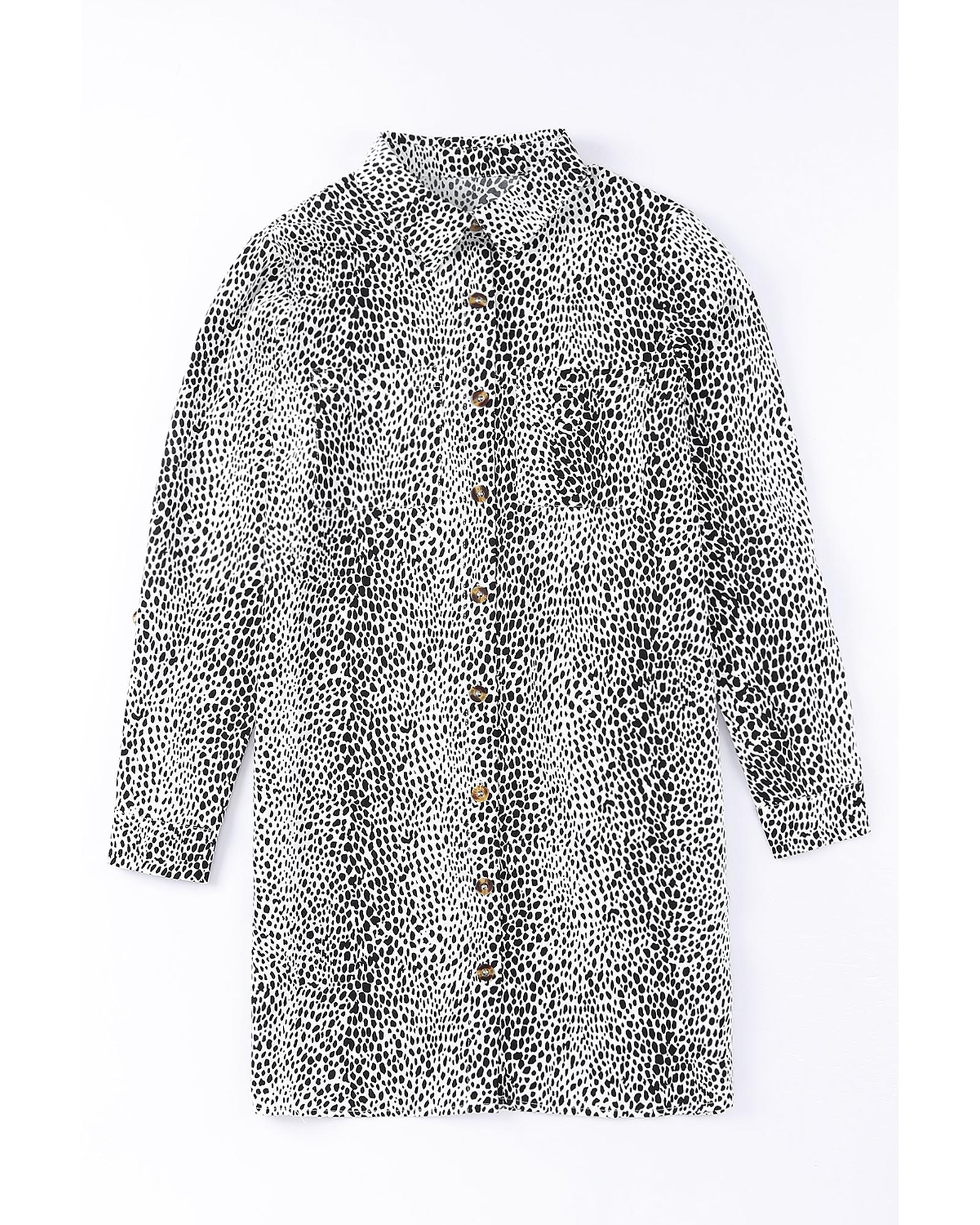 This long sleeve leopard animal print shirt dress offers a stylish and versatile option for women, suitable for both casual and formal occasions. Designed with a trendy fitted silhouette, it features a classic shirt collar and long sleeves, making it a fashionable addition to any wardrobe. Crafted from high-quality materials, it ensures a comfortable fit and a bold, sophisticated look.
