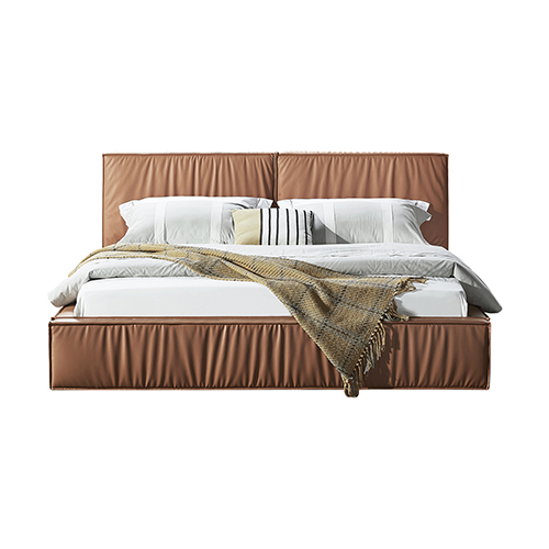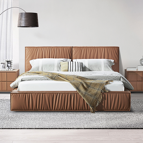 This bed frame features a modern design with a luxurious appearance, upholstered in high-quality leatherette material. It combines style with durability, providing a comfortable and safe sleeping environment while maintaining an affordable price point.