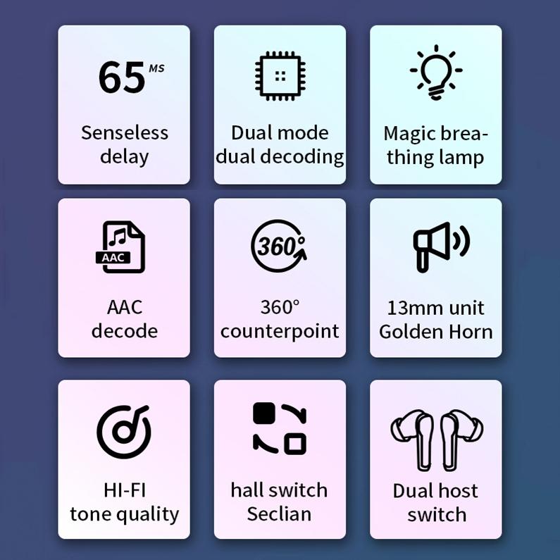 Low Latency Wireless Bluetooth Game Earphones with Colourful Lights – Digital Display