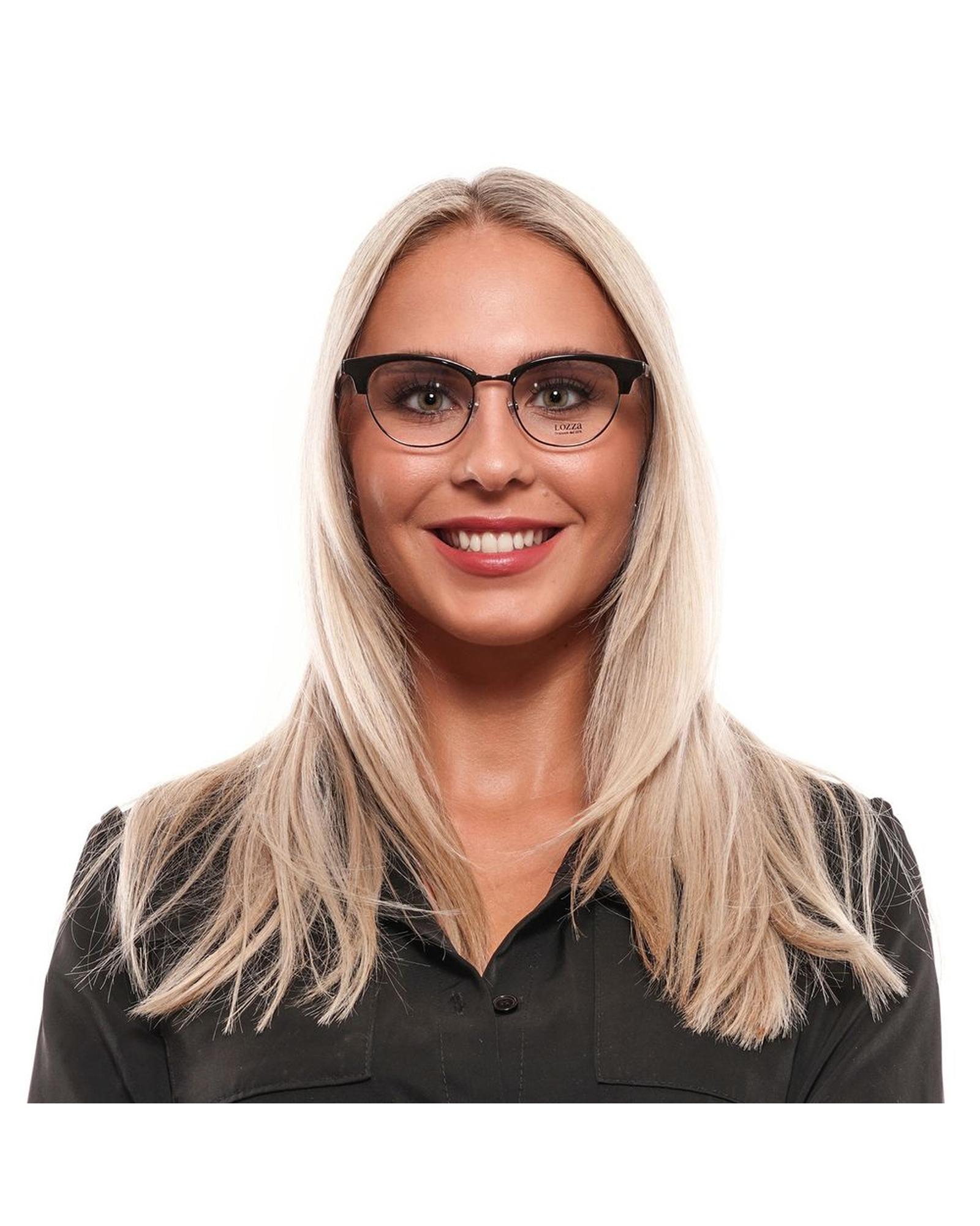 This pair of women’s optical frames features a classic black design suitable for everyday wear. Crafted from durable plastic, these frames combine comfort with style, making them a versatile accessory for various outfits.