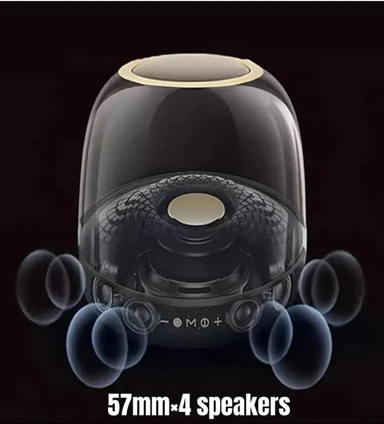 This Bluetooth home theater speaker offers immersive 360-degree surround sound combined with dynamic LED light effects. Designed for versatile use in bedrooms, living rooms, or home theaters, it provides high-quality audio and visual experiences with modern aesthetics.