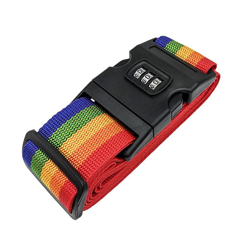This luggage strap is designed to secure your suitcase effectively during travel. It features a durable nylon construction with an adjustable length, providing a reliable and customizable fit. The strap includes a 3-digit combination lock for added security and is available in multiple colors to suit your preferences.