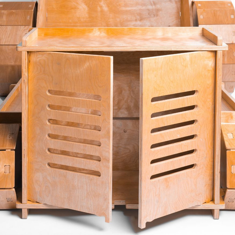 Materials meet strict formaldehyde standards and are finished with food-grade wood wax oil. The long-lasting design reduces landfill waste and greenhouse emissions. The furniture is produced by a family-run business with over 20 years of experience, adhering to social compliance standards. Made from a single material, it can be recycled into mulch, compost, or used for other purposes such as animal bedding.