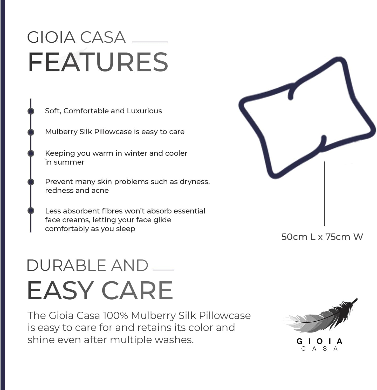 Skin Benefits: The silk surface helps maintain skin clarity by preventing absorption of face creams and reducing sleep creases. It also regulates temperature for year-round comfort.