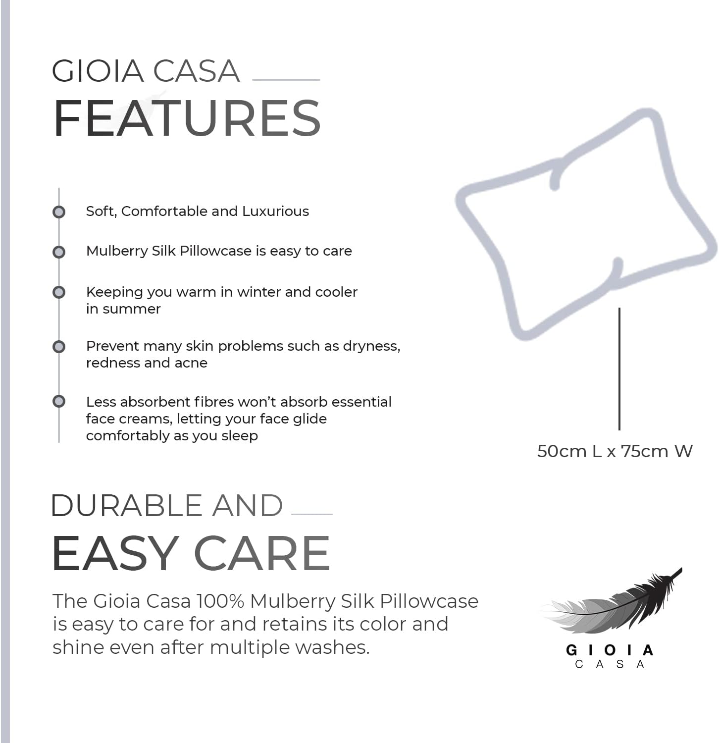 Skin Benefits: The silk surface helps maintain skin clarity by preventing absorption of face creams and reducing sleep creases. It also helps regulate temperature for year-round comfort.